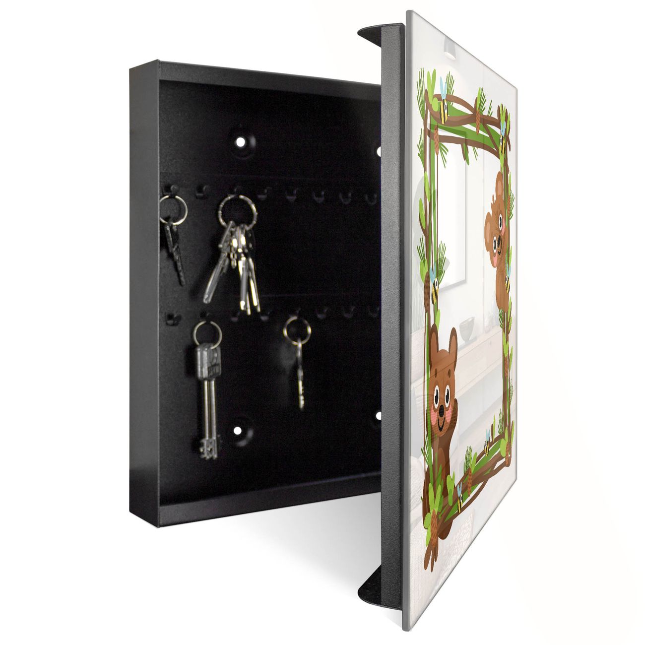 Schlüsselkasten Glas Motiv Waldtier-Rahmen
