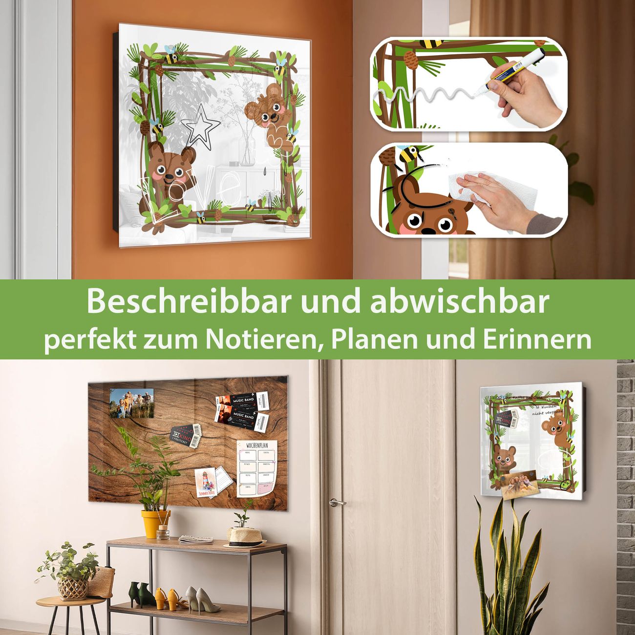 ✅ Magnetisch und mit Kreidestift beschreibbar, gehärtetes Glas, rechts angeschlagene TürOrdnung und Design in einem