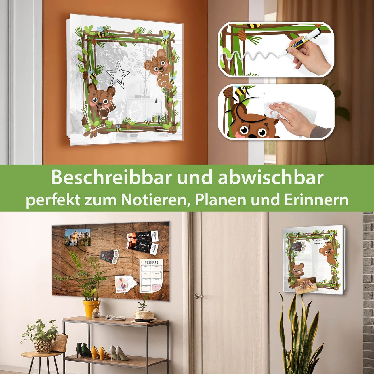 ✅ Magnetisch und mit Kreidestift beschreibbar, gehärtetes Glas, links angeschlagene TürOrdnung und Design in einem