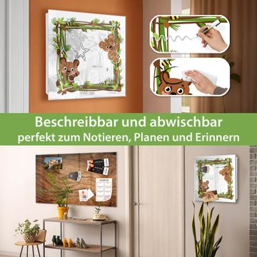 Bringe Ordnung und Eleganz in deinen Eingangsbereich mit dem banjado Schlüsselkasten Motiv Motiv Waldtier-Rahmen. Die moderne Schlüsselbox kombiniert funktionales Design mit hochwertiger Verarbeitung und wird so zu einem echten Hingucker in Flur, Büro oder Ferienwohnung. ✅ Stilvolle Schlüsselaufbewahrung mit Glasfront im Motiv Motiv Waldtier-Rahmen Der Design-Schlüsselkasten Motiv Motiv Waldtier-Rahmen bietet Platz für bis zu 50 Schlüssel, die auf 5 stabilen Reihen mit je 10 Haken übersichtlich verstaut werden. Mit seinen kompakten Maßen von 30 x 30 x 5 cm passt die Schlüsselbox perfekt auch in kleinere Räume. Der weiß lackierte Stahlkorpus mit rechts angeschlagenem Türscharnier harmoniert mit der Glasfront und fügt sich nahtlos in jedes Wohnambiente ein. Ob als Schlüsselorganizer für Zuhause oder als praktische Lösung für Büros, Praxen und Gewerbe, der banjado Schlüsselkasten sorgt für Ordnung und Übersicht. Dank der magnetischen, mit Kreidestiften beschreibbaren Glasfront kannst du Notizen anheften oder Termine direkt auf der Oberfläche festhalten. Die Schlüsselbox Motiv Motiv Waldtier-Rahmen zur Wandmontage wird inklusive Befestigungsmaterial geliefert und ist schnell angebracht. So hast du deine Schlüssel jederzeit griffbereit und zugleich stilvoll verstaut. Mit diesem banjado Schlüsselkasten Motiv Motiv Waldtier-Rahmen kombinierst du praktische Aufbewahrung mit stilvollem Wohndesign. Ob privat oder geschäftlich, die Schlüsselbox sorgt für mehr Ordnung, Übersicht und ein wohnliches Ambiente.Vorteile im Überblick
