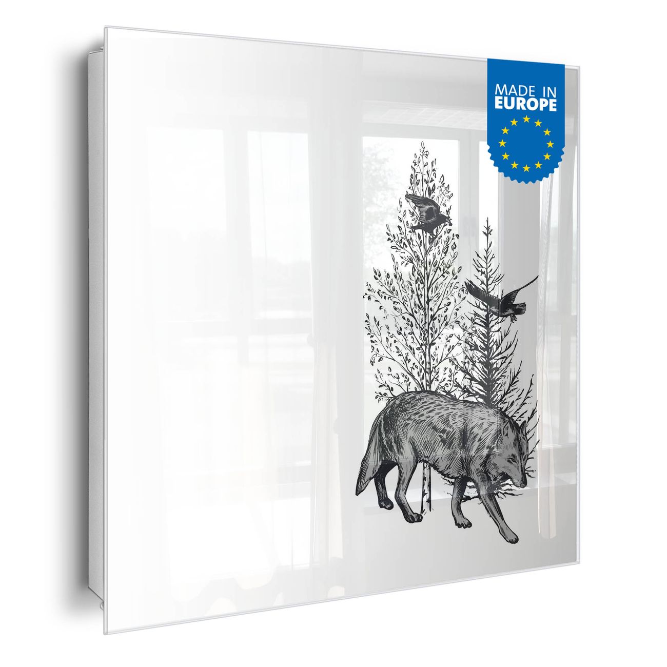 Schlüsselkasten Glas Motiv Waldtiere in Schwarz-Weiß