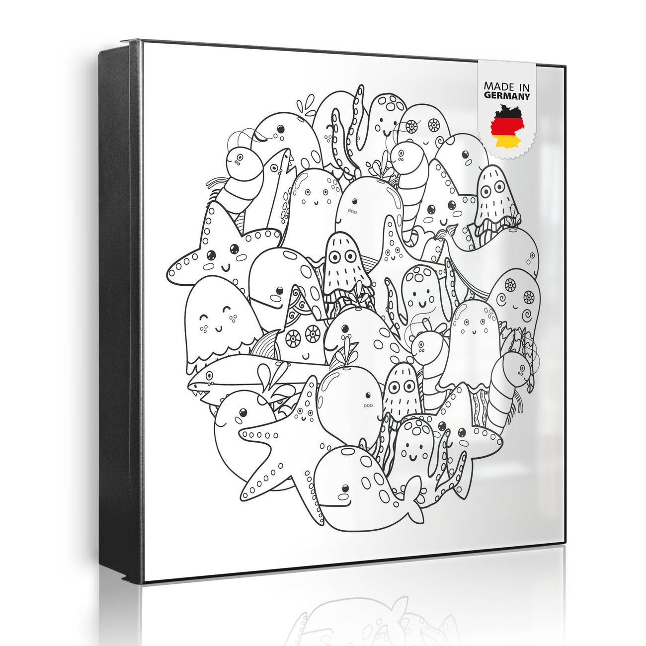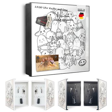 Bringe Ordnung und Eleganz in deinen Eingangsbereich mit dem banjado Schlüsselkasten Motiv Motiv Wassermonsterchen 2. Die moderne Schlüsselbox kombiniert funktionales Design mit hochwertiger Verarbeitung und wird so zu einem echten Hingucker in Flur, Büro oder Ferienwohnung. ✅ Stilvolle Schlüsselaufbewahrung mit Motiv Motiv Wassermonsterchen 2 Der Design-Schlüsselkasten Motiv Motiv Wassermonsterchen 2 bietet Platz für bis zu 32 Schlüssel, die auf 4 stabilen Reihen mit je 8 Haken übersichtlich verstaut werden. Mit seinen kompakten Maßen von 30 x 30 x 5 cm passt die Schlüsselbox perfekt auch in kleinere Räume. Der schwarz lackierte Stahlkorpus mit links angeschlagenem Türscharnier harmoniert mit gedruckten Folie auf der Front und fügt sich nahtlos in jedes Wohnambiente ein. Ob als Schlüsselorganizer für Zuhause oder als praktische Lösung für Büros, Praxen und Gewerbe, der banjado Schlüsselkasten sorgt für Ordnung und Übersicht. Dank der magnetischen, mit Kreidestiften beschreibbaren Folie auf der Front kannst du Notizen anheften oder Termine direkt auf der Oberfläche festhalten. Die Schlüsselbox Motiv Motiv Wassermonsterchen 2 zur Wandmontage wird inklusive Befestigungsmaterial geliefert und ist schnell angebracht. So hast du deine Schlüssel jederzeit griffbereit und zugleich stilvoll verstaut. Mit diesem banjado Schlüsselkasten Motiv Motiv Wassermonsterchen 2 kombinierst du praktische Aufbewahrung mit stilvollem Wohndesign. Ob privat oder geschäftlich, die Schlüsselbox sorgt für mehr Ordnung, Übersicht und ein wohnliches Ambiente.Vorteile im Überblick