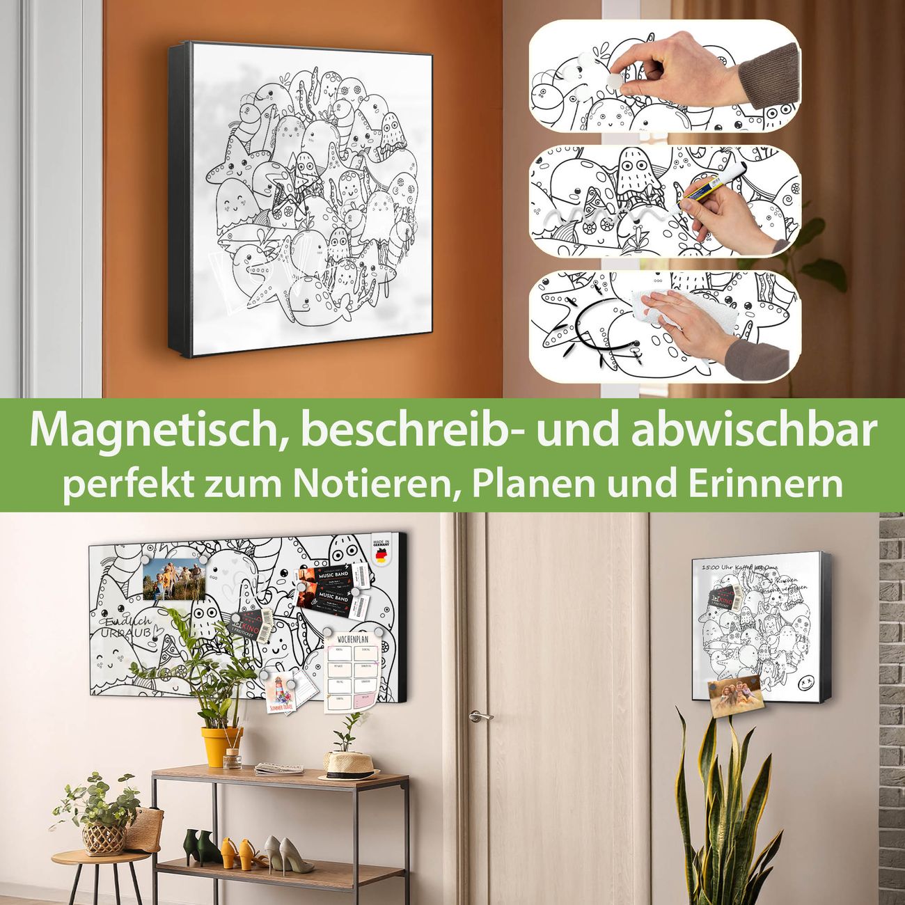 ✅ Magnetisch und mit Kreidestift beschreibbar, links angeschlagene TürOrdnung und Design in einem