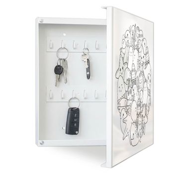 Bringe Ordnung und Eleganz in deinen Eingangsbereich mit dem banjado Schlüsselkasten Motiv Motiv Wassermonsterchen 2. Die moderne Schlüsselbox kombiniert funktionales Design mit hochwertiger Verarbeitung und wird so zu einem echten Hingucker in Flur, Büro oder Ferienwohnung. ✅ Stilvolle Schlüsselaufbewahrung mit Motiv Motiv Wassermonsterchen 2 Der Design-Schlüsselkasten Motiv Motiv Wassermonsterchen 2 bietet Platz für bis zu 32 Schlüssel, die auf 4 stabilen Reihen mit je 8 Haken übersichtlich verstaut werden. Mit seinen kompakten Maßen von 30 x 30 x 5 cm passt die Schlüsselbox perfekt auch in kleinere Räume. Der weiß lackierte Stahlkorpus mit rechts angeschlagenem Türscharnier harmoniert mit gedruckten Folie auf der Front und fügt sich nahtlos in jedes Wohnambiente ein. Ob als Schlüsselorganizer für Zuhause oder als praktische Lösung für Büros, Praxen und Gewerbe, der banjado Schlüsselkasten sorgt für Ordnung und Übersicht. Dank der magnetischen, mit Kreidestiften beschreibbaren Folie auf der Front kannst du Notizen anheften oder Termine direkt auf der Oberfläche festhalten. Die Schlüsselbox Motiv Motiv Wassermonsterchen 2 zur Wandmontage wird inklusive Befestigungsmaterial geliefert und ist schnell angebracht. So hast du deine Schlüssel jederzeit griffbereit und zugleich stilvoll verstaut. Mit diesem banjado Schlüsselkasten Motiv Motiv Wassermonsterchen 2 kombinierst du praktische Aufbewahrung mit stilvollem Wohndesign. Ob privat oder geschäftlich, die Schlüsselbox sorgt für mehr Ordnung, Übersicht und ein wohnliches Ambiente.Vorteile im Überblick