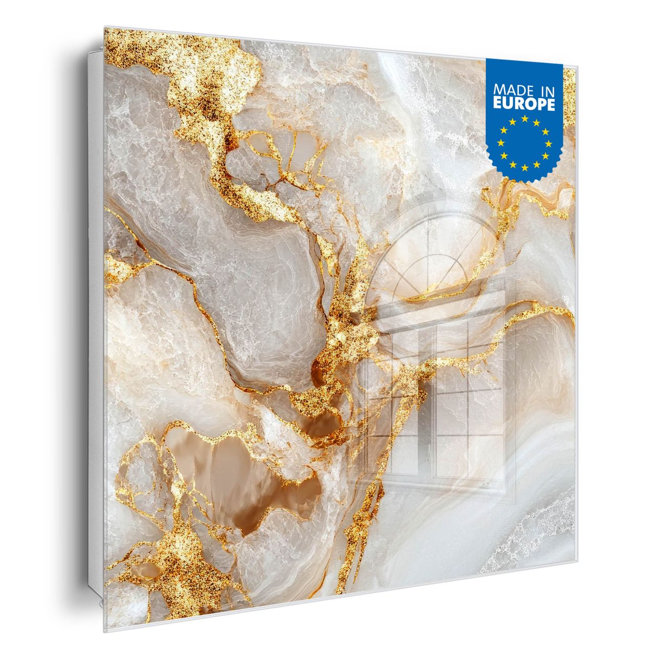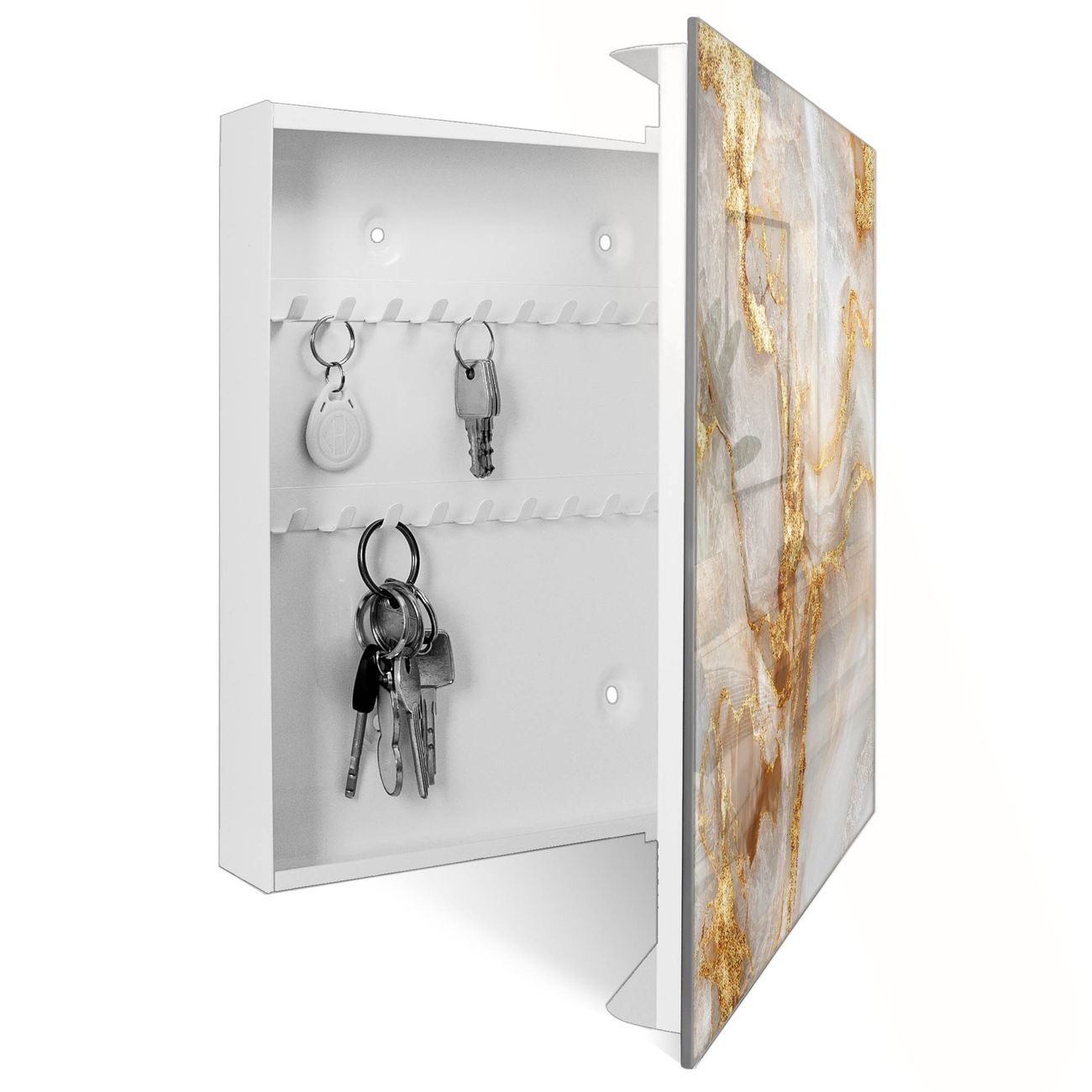 Schlüsselkasten Glas Motiv Weißer Marmor mit Gold 1