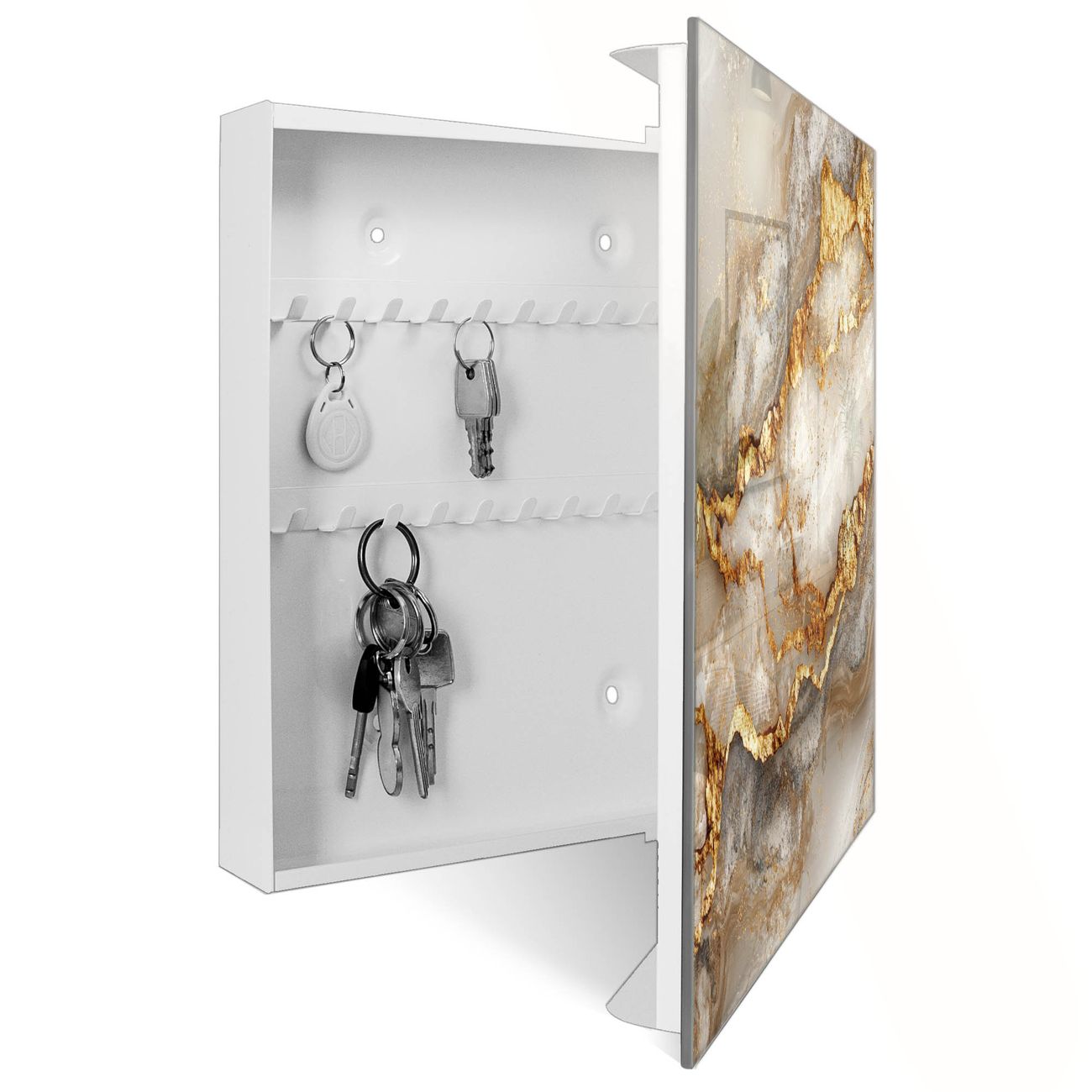 Schlüsselkasten Glas Motiv Weißer Marmor mit Gold 2