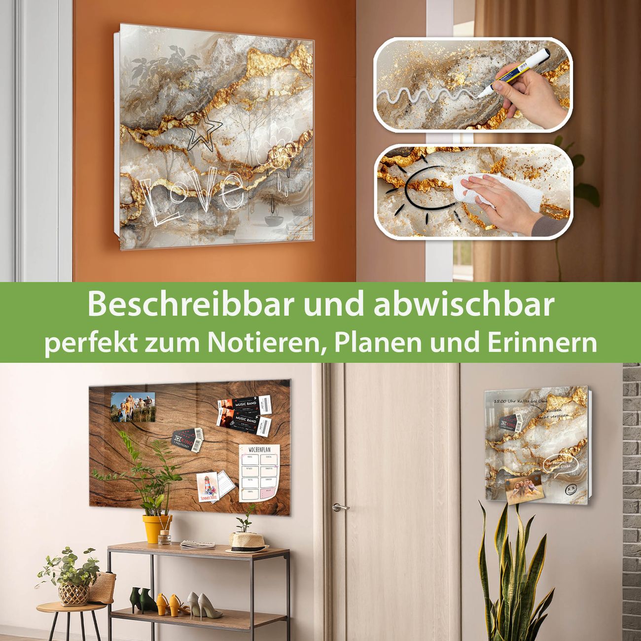 ✅ Magnetisch und mit Kreidestift beschreibbar, gehärtetes Glas, rechts angeschlagene TürOrdnung und Design in einem