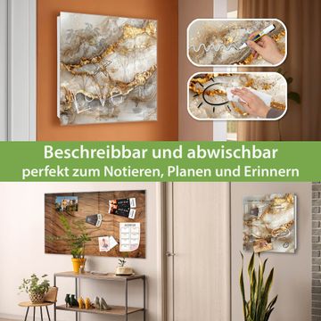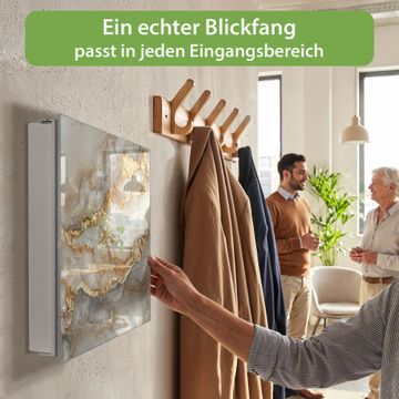 Bringe Ordnung und Eleganz in deinen Eingangsbereich mit dem banjado Schlüsselkasten Motiv Weißer Marmor mit Gold 2. Die moderne Schlüsselbox kombiniert funktionales Design mit hochwertiger Verarbeitung und wird so zu einem echten Hingucker in Flur, Büro oder Ferienwohnung. ✅ Stilvolle Schlüsselaufbewahrung mit Glasfront im Motiv Motiv Weißer Marmor mit Gold 2 Der Design-Schlüsselkasten Motiv Weißer Marmor mit Gold 2 bietet Platz für bis zu 50 Schlüssel, die auf 5 stabilen Reihen mit je 10 Haken übersichtlich verstaut werden. Mit seinen kompakten Maßen von 30 x 30 x 5 cm passt die Schlüsselbox perfekt auch in kleinere Räume. Der weiß lackierte Stahlkorpus mit rechts angeschlagenem Türscharnier harmoniert mit der Glasfront und fügt sich nahtlos in jedes Wohnambiente ein. Ob als Schlüsselorganizer für Zuhause oder als praktische Lösung für Büros, Praxen und Gewerbe, der banjado Schlüsselkasten sorgt für Ordnung und Übersicht. Dank der magnetischen, mit Kreidestiften beschreibbaren Glasfront kannst du Notizen anheften oder Termine direkt auf der Oberfläche festhalten. Die Schlüsselbox Motiv Weißer Marmor mit Gold 2 zur Wandmontage wird inklusive Befestigungsmaterial geliefert und ist schnell angebracht. So hast du deine Schlüssel jederzeit griffbereit und zugleich stilvoll verstaut. Mit diesem banjado Schlüsselkasten Motiv Weißer Marmor mit Gold 2 kombinierst du praktische Aufbewahrung mit stilvollem Wohndesign. Ob privat oder geschäftlich, die Schlüsselbox sorgt für mehr Ordnung, Übersicht und ein wohnliches Ambiente.Vorteile im Überblick