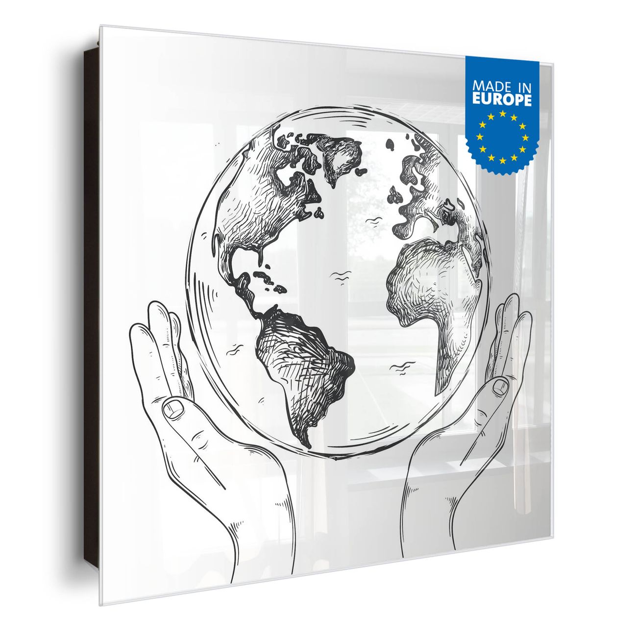 Schlüsselkasten Glas Motiv Welt in den Händen