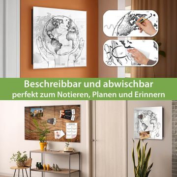 Bringe Ordnung und Eleganz in deinen Eingangsbereich mit dem banjado Schlüsselkasten Motiv Motiv Welt in den Händen. Die moderne Schlüsselbox kombiniert funktionales Design mit hochwertiger Verarbeitung und wird so zu einem echten Hingucker in Flur, Büro oder Ferienwohnung. ✅ Stilvolle Schlüsselaufbewahrung mit Glasfront im Motiv Motiv Welt in den Händen Der Design-Schlüsselkasten Motiv Motiv Welt in den Händen bietet Platz für bis zu 50 Schlüssel, die auf 5 stabilen Reihen mit je 10 Haken übersichtlich verstaut werden. Mit seinen kompakten Maßen von 30 x 30 x 5 cm passt die Schlüsselbox perfekt auch in kleinere Räume. Der schwarz lackierte Stahlkorpus mit rechts angeschlagenem Türscharnier harmoniert mit der Glasfront und fügt sich nahtlos in jedes Wohnambiente ein. Ob als Schlüsselorganizer für Zuhause oder als praktische Lösung für Büros, Praxen und Gewerbe, der banjado Schlüsselkasten sorgt für Ordnung und Übersicht. Dank der magnetischen, mit Kreidestiften beschreibbaren Glasfront kannst du Notizen anheften oder Termine direkt auf der Oberfläche festhalten. Die Schlüsselbox Motiv Motiv Welt in den Händen zur Wandmontage wird inklusive Befestigungsmaterial geliefert und ist schnell angebracht. So hast du deine Schlüssel jederzeit griffbereit und zugleich stilvoll verstaut. Mit diesem banjado Schlüsselkasten Motiv Motiv Welt in den Händen kombinierst du praktische Aufbewahrung mit stilvollem Wohndesign. Ob privat oder geschäftlich, die Schlüsselbox sorgt für mehr Ordnung, Übersicht und ein wohnliches Ambiente.Vorteile im Überblick