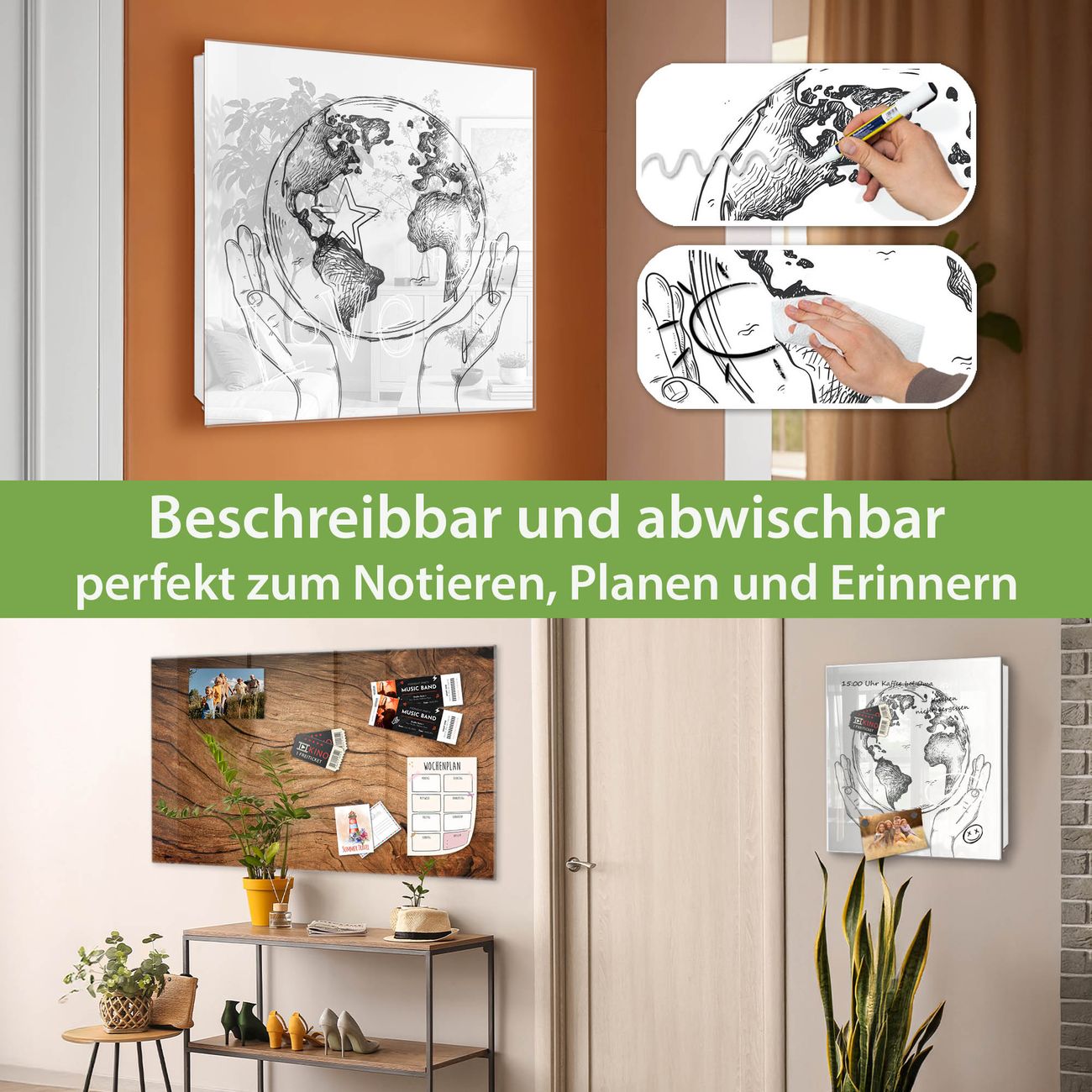 ✅ Magnetisch und mit Kreidestift beschreibbar, gehärtetes Glas, links angeschlagene TürOrdnung und Design in einem