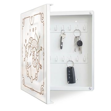 Bringe Ordnung und Eleganz in deinen Eingangsbereich mit dem banjado Schlüsselkasten Motiv Motiv Sternzeichen Widder. Die moderne Schlüsselbox kombiniert funktionales Design mit hochwertiger Verarbeitung und wird so zu einem echten Hingucker in Flur, Büro oder Ferienwohnung. ✅ Stilvolle Schlüsselaufbewahrung mit Motiv Motiv Sternzeichen Widder Der Design-Schlüsselkasten Motiv Motiv Sternzeichen Widder bietet Platz für bis zu 32 Schlüssel, die auf 4 stabilen Reihen mit je 8 Haken übersichtlich verstaut werden. Mit seinen kompakten Maßen von 30 x 30 x 5 cm passt die Schlüsselbox perfekt auch in kleinere Räume. Der weiß lackierte Stahlkorpus mit links angeschlagenem Türscharnier harmoniert mit gedruckten Folie auf der Front und fügt sich nahtlos in jedes Wohnambiente ein. Ob als Schlüsselorganizer für Zuhause oder als praktische Lösung für Büros, Praxen und Gewerbe, der banjado Schlüsselkasten sorgt für Ordnung und Übersicht. Dank der magnetischen, mit Kreidestiften beschreibbaren Folie auf der Front kannst du Notizen anheften oder Termine direkt auf der Oberfläche festhalten. Die Schlüsselbox Motiv Motiv Sternzeichen Widder zur Wandmontage wird inklusive Befestigungsmaterial geliefert und ist schnell angebracht. So hast du deine Schlüssel jederzeit griffbereit und zugleich stilvoll verstaut. Mit diesem banjado Schlüsselkasten Motiv Motiv Sternzeichen Widder kombinierst du praktische Aufbewahrung mit stilvollem Wohndesign. Ob privat oder geschäftlich, die Schlüsselbox sorgt für mehr Ordnung, Übersicht und ein wohnliches Ambiente.Vorteile im Überblick