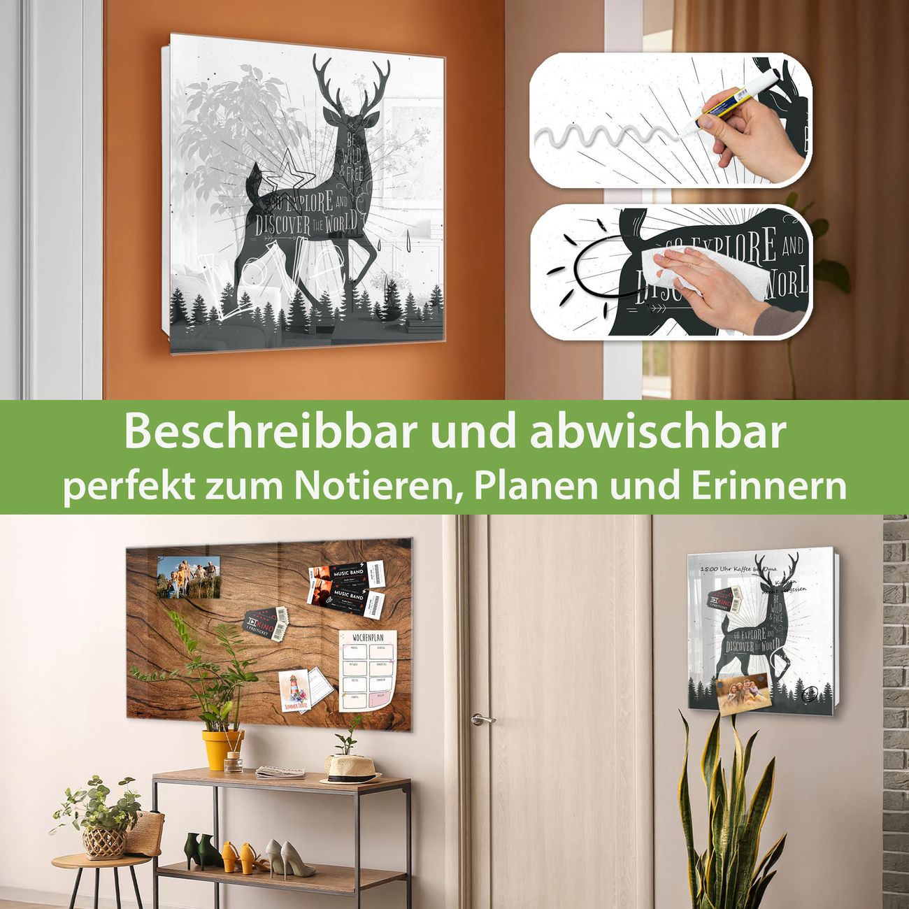 ✅ Magnetisch und mit Kreidestift beschreibbar, gehärtetes Glas, rechts angeschlagene TürOrdnung und Design in einem
