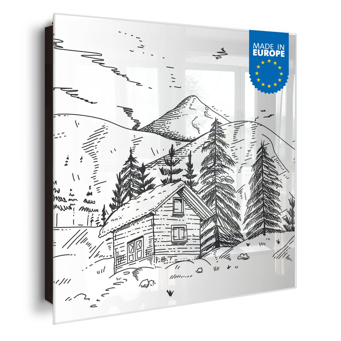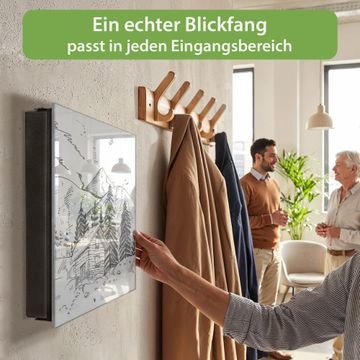 Bringe Ordnung und Eleganz in deinen Eingangsbereich mit dem banjado Schlüsselkasten Motiv Motiv Winterliche Berghüttenidylle. Die moderne Schlüsselbox kombiniert funktionales Design mit hochwertiger Verarbeitung und wird so zu einem echten Hingucker in Flur, Büro oder Ferienwohnung. ✅ Stilvolle Schlüsselaufbewahrung mit Glasfront im Motiv Motiv Winterliche Berghüttenidylle Der Design-Schlüsselkasten Motiv Motiv Winterliche Berghüttenidylle bietet Platz für bis zu 50 Schlüssel, die auf 5 stabilen Reihen mit je 10 Haken übersichtlich verstaut werden. Mit seinen kompakten Maßen von 30 x 30 x 5 cm passt die Schlüsselbox perfekt auch in kleinere Räume. Der schwarz lackierte Stahlkorpus mit rechts angeschlagenem Türscharnier harmoniert mit der Glasfront und fügt sich nahtlos in jedes Wohnambiente ein. Ob als Schlüsselorganizer für Zuhause oder als praktische Lösung für Büros, Praxen und Gewerbe, der banjado Schlüsselkasten sorgt für Ordnung und Übersicht. Dank der magnetischen, mit Kreidestiften beschreibbaren Glasfront kannst du Notizen anheften oder Termine direkt auf der Oberfläche festhalten. Die Schlüsselbox Motiv Motiv Winterliche Berghüttenidylle zur Wandmontage wird inklusive Befestigungsmaterial geliefert und ist schnell angebracht. So hast du deine Schlüssel jederzeit griffbereit und zugleich stilvoll verstaut. Mit diesem banjado Schlüsselkasten Motiv Motiv Winterliche Berghüttenidylle kombinierst du praktische Aufbewahrung mit stilvollem Wohndesign. Ob privat oder geschäftlich, die Schlüsselbox sorgt für mehr Ordnung, Übersicht und ein wohnliches Ambiente.Vorteile im Überblick