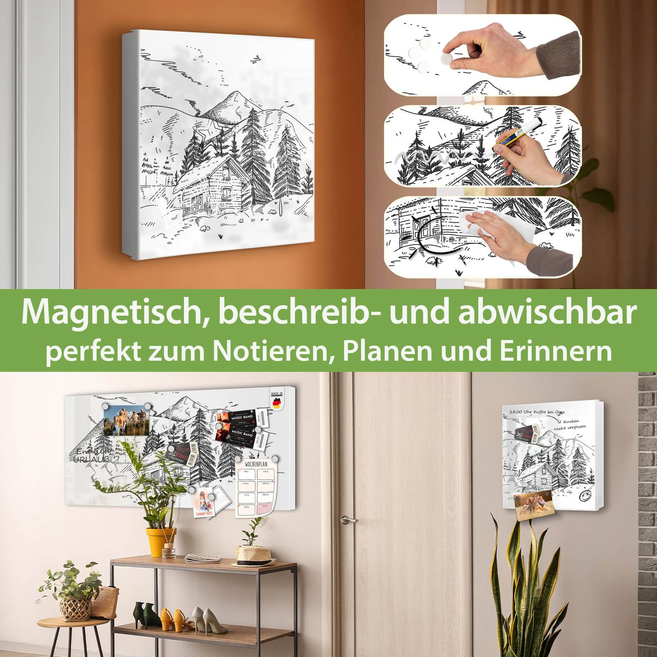 ✅ Magnetisch und mit Kreidestift beschreibbar, links angeschlagene TürOrdnung und Design in einem