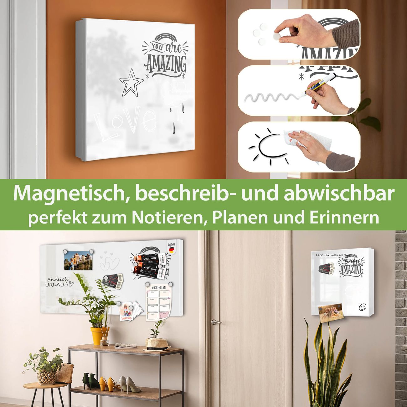 ✅ Magnetisch und mit Kreidestift beschreibbar, rechts angeschlagene TürOrdnung und Design in einem