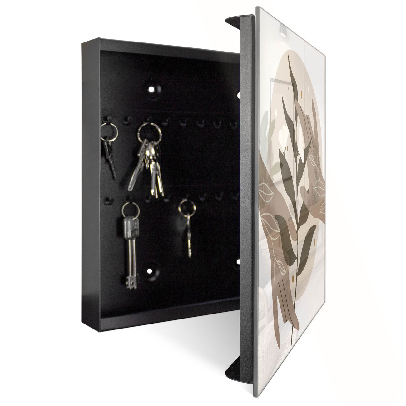 Bringe Ordnung und Eleganz in deinen Eingangsbereich mit dem banjado Schlüsselkasten Motiv Motiv Zarte Berührung. Die moderne Schlüsselbox kombiniert funktionales Design mit hochwertiger Verarbeitung und wird so zu einem echten Hingucker in Flur, Büro oder Ferienwohnung. ✅ Stilvolle Schlüsselaufbewahrung mit Glasfront im Motiv Motiv Zarte Berührung Der Design-Schlüsselkasten Motiv Motiv Zarte Berührung bietet Platz für bis zu 50 Schlüssel, die auf 5 stabilen Reihen mit je 10 Haken übersichtlich verstaut werden. Mit seinen kompakten Maßen von 30 x 30 x 5 cm passt die Schlüsselbox perfekt auch in kleinere Räume. Der schwarz lackierte Stahlkorpus mit rechts angeschlagenem Türscharnier harmoniert mit der Glasfront und fügt sich nahtlos in jedes Wohnambiente ein. Ob als Schlüsselorganizer für Zuhause oder als praktische Lösung für Büros, Praxen und Gewerbe, der banjado Schlüsselkasten sorgt für Ordnung und Übersicht. Dank der magnetischen, mit Kreidestiften beschreibbaren Glasfront kannst du Notizen anheften oder Termine direkt auf der Oberfläche festhalten. Die Schlüsselbox Motiv Motiv Zarte Berührung zur Wandmontage wird inklusive Befestigungsmaterial geliefert und ist schnell angebracht. So hast du deine Schlüssel jederzeit griffbereit und zugleich stilvoll verstaut. Mit diesem banjado Schlüsselkasten Motiv Motiv Zarte Berührung kombinierst du praktische Aufbewahrung mit stilvollem Wohndesign. Ob privat oder geschäftlich, die Schlüsselbox sorgt für mehr Ordnung, Übersicht und ein wohnliches Ambiente.Vorteile im Überblick