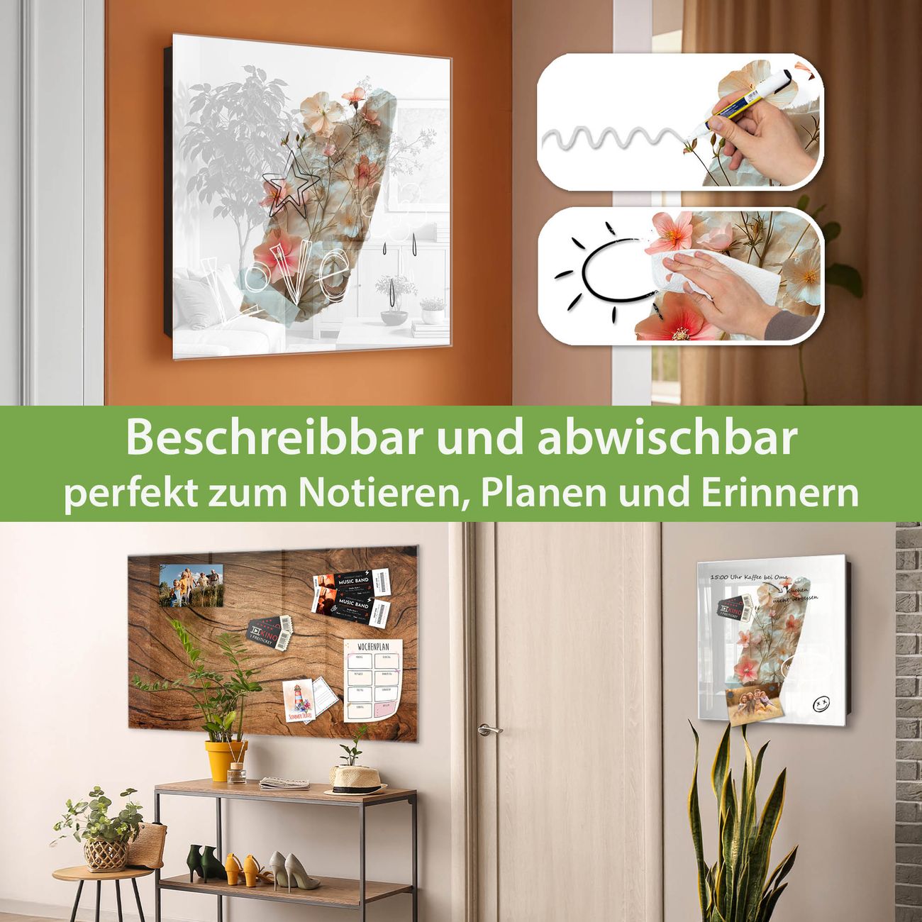 ✅ Magnetisch und mit Kreidestift beschreibbar, gehärtetes Glas, rechts angeschlagene TürOrdnung und Design in einem