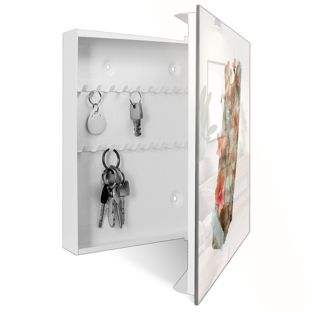 Schlüsselkasten Glas Motiv Zarte Blütenkomposition