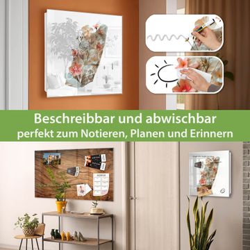 Bringe Ordnung und Eleganz in deinen Eingangsbereich mit dem banjado Schlüsselkasten Motiv Motiv Zarte Blütenkomposition. Die moderne Schlüsselbox kombiniert funktionales Design mit hochwertiger Verarbeitung und wird so zu einem echten Hingucker in Flur, Büro oder Ferienwohnung. ✅ Stilvolle Schlüsselaufbewahrung mit Glasfront im Motiv Motiv Zarte Blütenkomposition Der Design-Schlüsselkasten Motiv Motiv Zarte Blütenkomposition bietet Platz für bis zu 50 Schlüssel, die auf 5 stabilen Reihen mit je 10 Haken übersichtlich verstaut werden. Mit seinen kompakten Maßen von 30 x 30 x 5 cm passt die Schlüsselbox perfekt auch in kleinere Räume. Der weiß lackierte Stahlkorpus mit rechts angeschlagenem Türscharnier harmoniert mit der Glasfront und fügt sich nahtlos in jedes Wohnambiente ein. Ob als Schlüsselorganizer für Zuhause oder als praktische Lösung für Büros, Praxen und Gewerbe, der banjado Schlüsselkasten sorgt für Ordnung und Übersicht. Dank der magnetischen, mit Kreidestiften beschreibbaren Glasfront kannst du Notizen anheften oder Termine direkt auf der Oberfläche festhalten. Die Schlüsselbox Motiv Motiv Zarte Blütenkomposition zur Wandmontage wird inklusive Befestigungsmaterial geliefert und ist schnell angebracht. So hast du deine Schlüssel jederzeit griffbereit und zugleich stilvoll verstaut. Mit diesem banjado Schlüsselkasten Motiv Motiv Zarte Blütenkomposition kombinierst du praktische Aufbewahrung mit stilvollem Wohndesign. Ob privat oder geschäftlich, die Schlüsselbox sorgt für mehr Ordnung, Übersicht und ein wohnliches Ambiente.Vorteile im Überblick