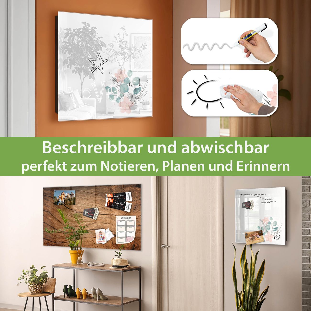 ✅ Magnetisch und mit Kreidestift beschreibbar, gehärtetes Glas, links angeschlagene TürOrdnung und Design in einem