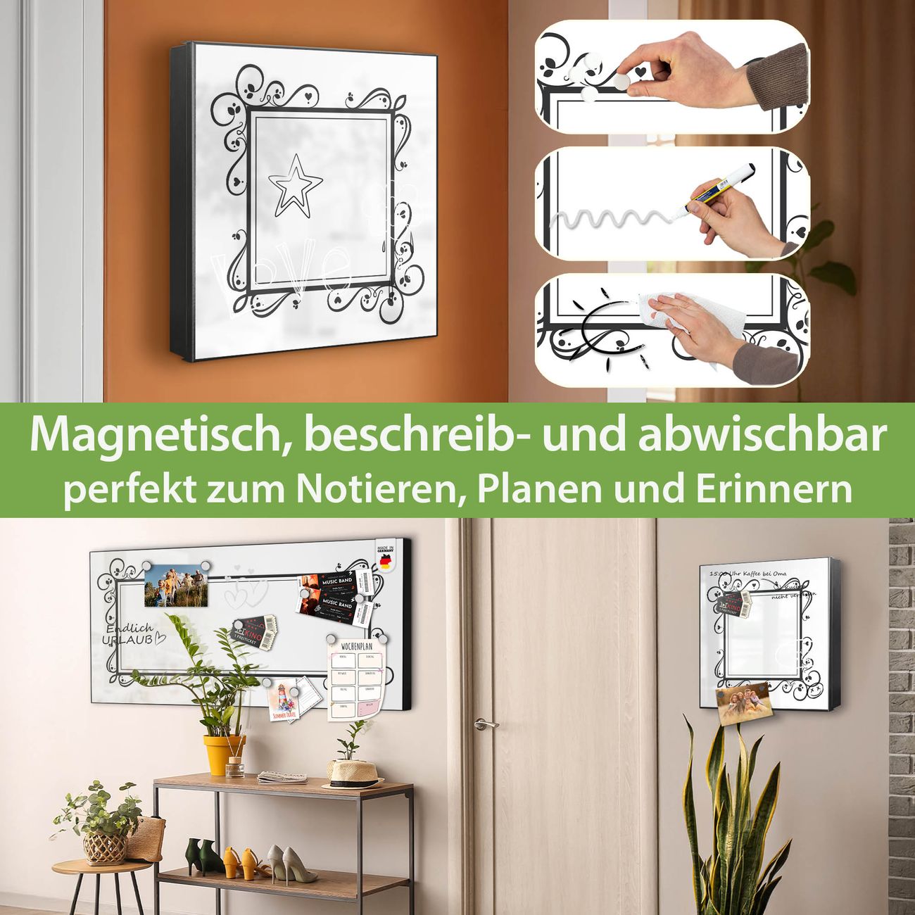 ✅ Magnetisch und mit Kreidestift beschreibbar, rechts angeschlagene TürOrdnung und Design in einem