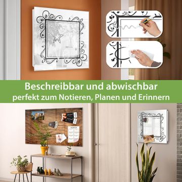 Bringe Ordnung und Eleganz in deinen Eingangsbereich mit dem banjado Schlüsselkasten Motiv Motiv Zierlicher Rahmen mit Herzen. Die moderne Schlüsselbox kombiniert funktionales Design mit hochwertiger Verarbeitung und wird so zu einem echten Hingucker in Flur, Büro oder Ferienwohnung. ✅ Stilvolle Schlüsselaufbewahrung mit Glasfront im Motiv Motiv Zierlicher Rahmen mit Herzen Der Design-Schlüsselkasten Motiv Motiv Zierlicher Rahmen mit Herzen bietet Platz für bis zu 50 Schlüssel, die auf 5 stabilen Reihen mit je 10 Haken übersichtlich verstaut werden. Mit seinen kompakten Maßen von 30 x 30 x 5 cm passt die Schlüsselbox perfekt auch in kleinere Räume. Der weiß lackierte Stahlkorpus mit rechts angeschlagenem Türscharnier harmoniert mit der Glasfront und fügt sich nahtlos in jedes Wohnambiente ein. Ob als Schlüsselorganizer für Zuhause oder als praktische Lösung für Büros, Praxen und Gewerbe, der banjado Schlüsselkasten sorgt für Ordnung und Übersicht. Dank der magnetischen, mit Kreidestiften beschreibbaren Glasfront kannst du Notizen anheften oder Termine direkt auf der Oberfläche festhalten. Die Schlüsselbox Motiv Motiv Zierlicher Rahmen mit Herzen zur Wandmontage wird inklusive Befestigungsmaterial geliefert und ist schnell angebracht. So hast du deine Schlüssel jederzeit griffbereit und zugleich stilvoll verstaut. Mit diesem banjado Schlüsselkasten Motiv Motiv Zierlicher Rahmen mit Herzen kombinierst du praktische Aufbewahrung mit stilvollem Wohndesign. Ob privat oder geschäftlich, die Schlüsselbox sorgt für mehr Ordnung, Übersicht und ein wohnliches Ambiente.Vorteile im Überblick