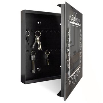Schlüsselkasten Glas Motiv Zierrahmen Grau-Weiß