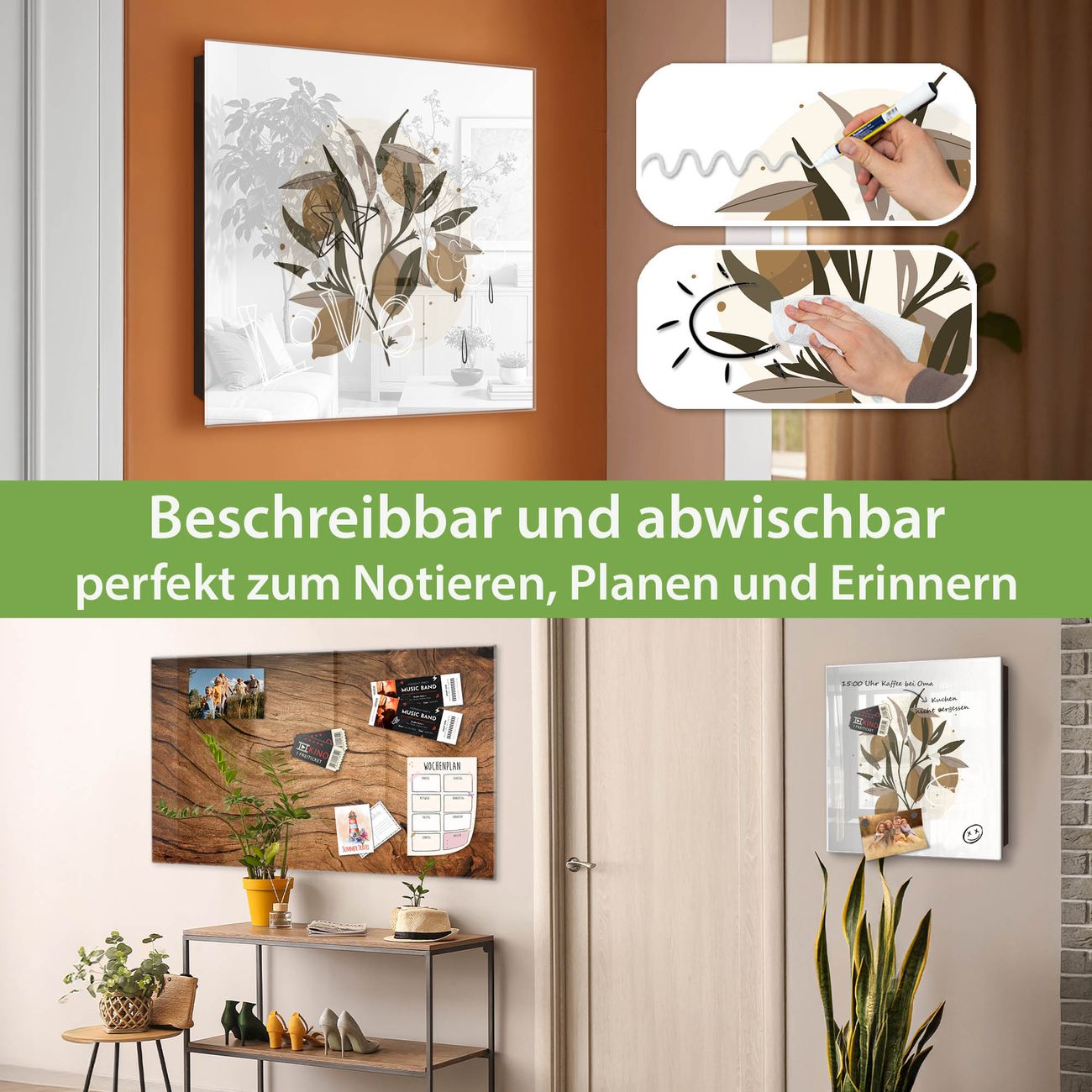 ✅ Magnetisch und mit Kreidestift beschreibbar, gehärtetes Glas, rechts angeschlagene TürOrdnung und Design in einem