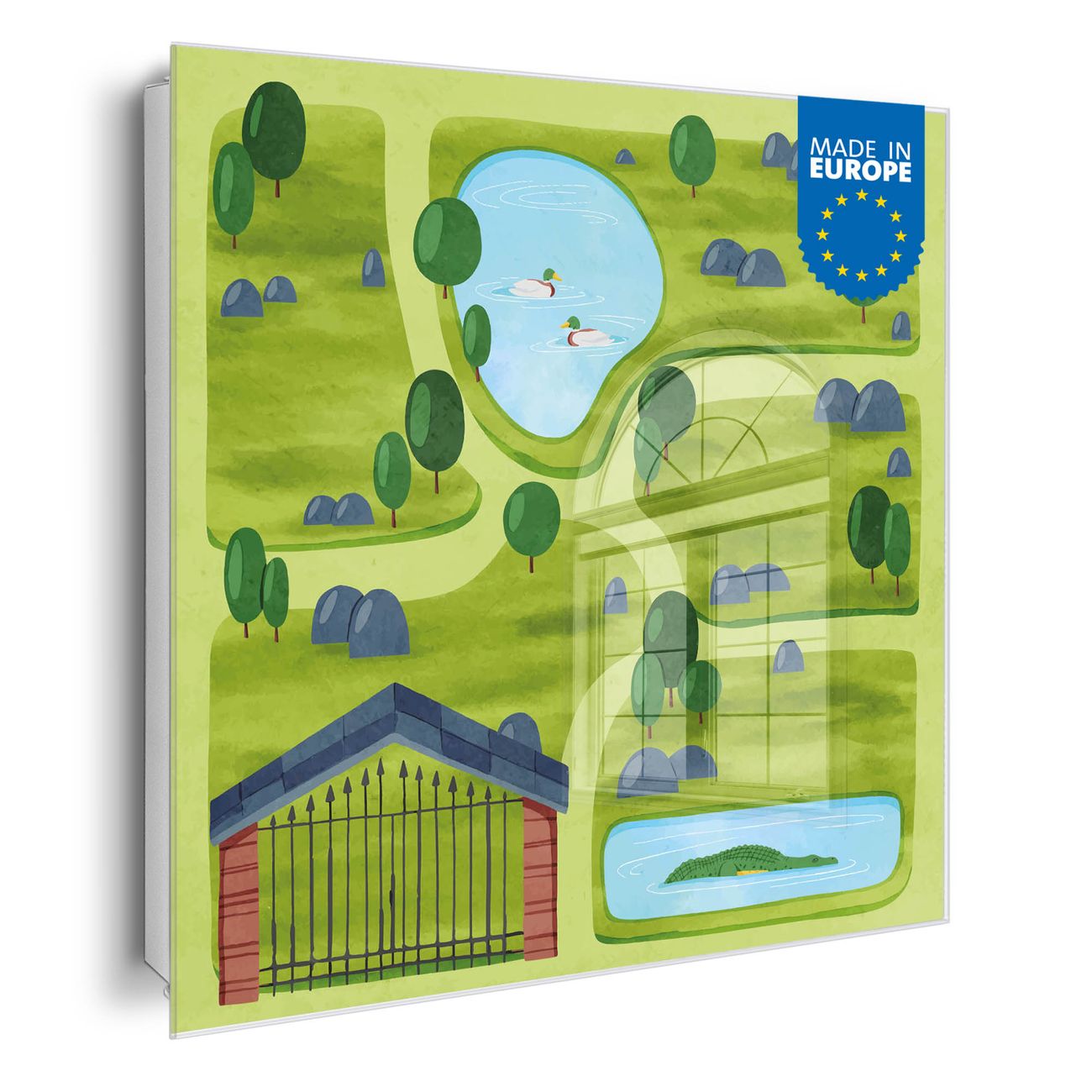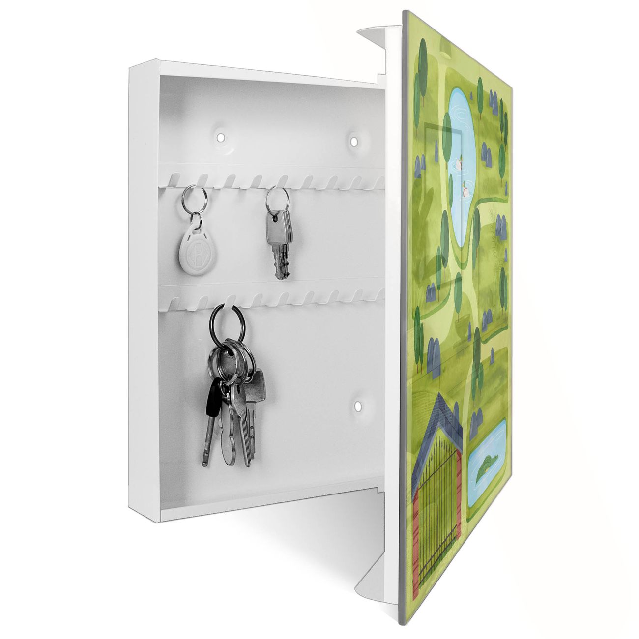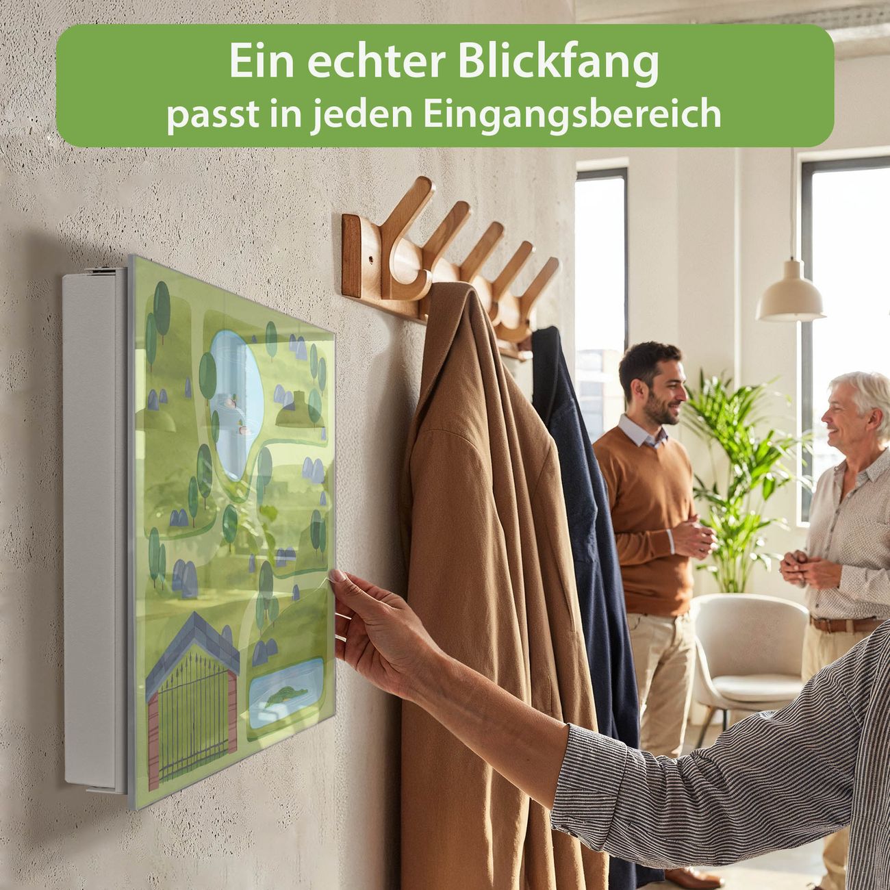 Bringe Ordnung und Eleganz in deinen Eingangsbereich mit dem banjado Schlüsselkasten Motiv Motiv Zoofläche. Die moderne Schlüsselbox kombiniert funktionales Design mit hochwertiger Verarbeitung und wird so zu einem echten Hingucker in Flur, Büro oder Ferienwohnung. ✅ Stilvolle Schlüsselaufbewahrung mit Glasfront im Motiv Motiv Zoofläche Der Design-Schlüsselkasten Motiv Motiv Zoofläche bietet Platz für bis zu 50 Schlüssel, die auf 5 stabilen Reihen mit je 10 Haken übersichtlich verstaut werden. Mit seinen kompakten Maßen von 30 x 30 x 5 cm passt die Schlüsselbox perfekt auch in kleinere Räume. Der weiß lackierte Stahlkorpus mit rechts angeschlagenem Türscharnier harmoniert mit der Glasfront und fügt sich nahtlos in jedes Wohnambiente ein. Ob als Schlüsselorganizer für Zuhause oder als praktische Lösung für Büros, Praxen und Gewerbe, der banjado Schlüsselkasten sorgt für Ordnung und Übersicht. Dank der magnetischen, mit Kreidestiften beschreibbaren Glasfront kannst du Notizen anheften oder Termine direkt auf der Oberfläche festhalten. Die Schlüsselbox Motiv Motiv Zoofläche zur Wandmontage wird inklusive Befestigungsmaterial geliefert und ist schnell angebracht. So hast du deine Schlüssel jederzeit griffbereit und zugleich stilvoll verstaut. Mit diesem banjado Schlüsselkasten Motiv Motiv Zoofläche kombinierst du praktische Aufbewahrung mit stilvollem Wohndesign. Ob privat oder geschäftlich, die Schlüsselbox sorgt für mehr Ordnung, Übersicht und ein wohnliches Ambiente.Vorteile im Überblick