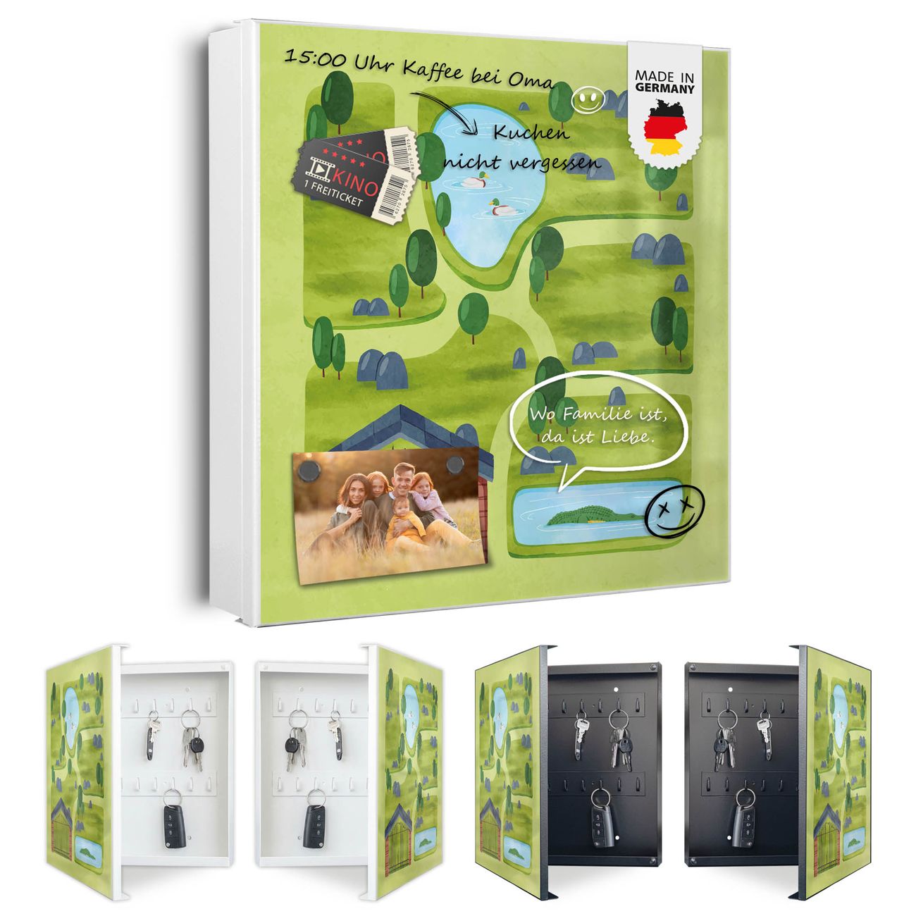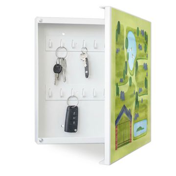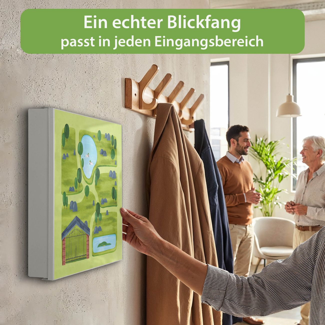 Bringe Ordnung und Eleganz in deinen Eingangsbereich mit dem banjado Schlüsselkasten Motiv Motiv Zoofläche. Die moderne Schlüsselbox kombiniert funktionales Design mit hochwertiger Verarbeitung und wird so zu einem echten Hingucker in Flur, Büro oder Ferienwohnung. ✅ Stilvolle Schlüsselaufbewahrung mit Motiv Motiv Zoofläche Der Design-Schlüsselkasten Motiv Motiv Zoofläche bietet Platz für bis zu 32 Schlüssel, die auf 4 stabilen Reihen mit je 8 Haken übersichtlich verstaut werden. Mit seinen kompakten Maßen von 30 x 30 x 5 cm passt die Schlüsselbox perfekt auch in kleinere Räume. Der weiß lackierte Stahlkorpus mit rechts angeschlagenem Türscharnier harmoniert mit gedruckten Folie auf der Front und fügt sich nahtlos in jedes Wohnambiente ein. Ob als Schlüsselorganizer für Zuhause oder als praktische Lösung für Büros, Praxen und Gewerbe, der banjado Schlüsselkasten sorgt für Ordnung und Übersicht. Dank der magnetischen, mit Kreidestiften beschreibbaren Folie auf der Front kannst du Notizen anheften oder Termine direkt auf der Oberfläche festhalten. Die Schlüsselbox Motiv Motiv Zoofläche zur Wandmontage wird inklusive Befestigungsmaterial geliefert und ist schnell angebracht. So hast du deine Schlüssel jederzeit griffbereit und zugleich stilvoll verstaut. Mit diesem banjado Schlüsselkasten Motiv Motiv Zoofläche kombinierst du praktische Aufbewahrung mit stilvollem Wohndesign. Ob privat oder geschäftlich, die Schlüsselbox sorgt für mehr Ordnung, Übersicht und ein wohnliches Ambiente.Vorteile im Überblick