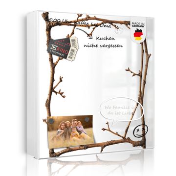 Bringe Ordnung und Eleganz in deinen Eingangsbereich mit dem banjado Schlüsselkasten Motiv Motiv Zweigrahmen. Die moderne Schlüsselbox kombiniert funktionales Design mit hochwertiger Verarbeitung und wird so zu einem echten Hingucker in Flur, Büro oder Ferienwohnung. ✅ Stilvolle Schlüsselaufbewahrung mit Motiv Motiv Zweigrahmen Der Design-Schlüsselkasten Motiv Motiv Zweigrahmen bietet Platz für bis zu 32 Schlüssel, die auf 4 stabilen Reihen mit je 8 Haken übersichtlich verstaut werden. Mit seinen kompakten Maßen von 30 x 30 x 5 cm passt die Schlüsselbox perfekt auch in kleinere Räume. Der weiß lackierte Stahlkorpus mit rechts angeschlagenem Türscharnier harmoniert mit gedruckten Folie auf der Front und fügt sich nahtlos in jedes Wohnambiente ein. Ob als Schlüsselorganizer für Zuhause oder als praktische Lösung für Büros, Praxen und Gewerbe, der banjado Schlüsselkasten sorgt für Ordnung und Übersicht. Dank der magnetischen, mit Kreidestiften beschreibbaren Folie auf der Front kannst du Notizen anheften oder Termine direkt auf der Oberfläche festhalten. Die Schlüsselbox Motiv Motiv Zweigrahmen zur Wandmontage wird inklusive Befestigungsmaterial geliefert und ist schnell angebracht. So hast du deine Schlüssel jederzeit griffbereit und zugleich stilvoll verstaut. Mit diesem banjado Schlüsselkasten Motiv Motiv Zweigrahmen kombinierst du praktische Aufbewahrung mit stilvollem Wohndesign. Ob privat oder geschäftlich, die Schlüsselbox sorgt für mehr Ordnung, Übersicht und ein wohnliches Ambiente.Vorteile im Überblick