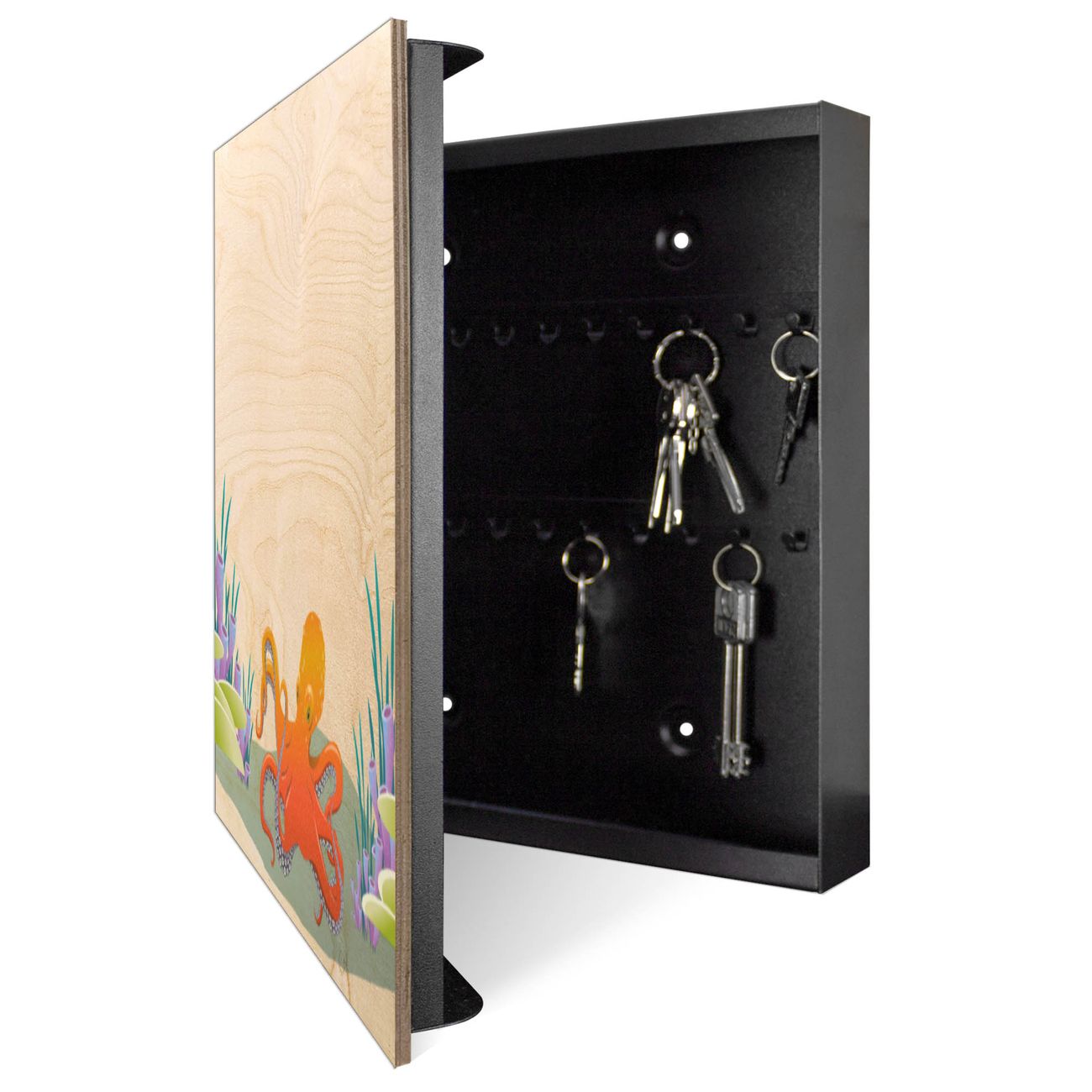 Bringe Ordnung und Eleganz in deinen Eingangsbereich mit dem banjado Schlüsselkasten Motiv Motiv Abenteuer im Ozean. Die moderne Schlüsselbox kombiniert funktionales Design mit hochwertiger Verarbeitung und wird so zu einem echten Hingucker in Flur, Büro oder Ferienwohnung. ✅ Stilvolle Schlüsselaufbewahrung mit moderner Holzfront im Motiv Motiv Abenteuer im Ozean Der Design-Schlüsselkasten Motiv Motiv Abenteuer im Ozean bietet Platz für bis zu 50 Schlüssel, die auf 5 stabilen Reihen mit je 10 Haken übersichtlich verstaut werden. Mit seinen kompakten Maßen von 30 x 30 x 5 cm passt die Schlüsselbox perfekt auch in kleinere Räume. Der schwarz lackierte Korpus mit dem Scharnier auf der linken Seite harmoniert mit der bedruckten Holzfront und fügt sich nahtlos in jedes Wohnambiente ein. Ob als Schlüsselorganizer für Zuhause oder als praktische Lösung für Büros, Praxen und Gewerbe - der banjado Schlüsselkasten sorgt für Ordnung und Übersicht. Durch die klare Strukturierung der Haken lassen sich auch viele Schlüssel problemlos verwalten. Die Schlüsselbox Motiv Motiv Abenteuer im Ozean zur Wandmontage wird inklusive Befestigungsmaterial geliefert und ist schnell angebracht. So hast du deine Schlüssel jederzeit griffbereit und zugleich stilvoll verstaut. Mit diesem banjado Schlüsselkasten Motiv Motiv Abenteuer im Ozean kombinierst du praktische Aufbewahrung mit stilvollem Wohndesign. Ob privat oder geschäftlich - die Schlüsselbox sorgt für mehr Ordnung, Übersicht und ein wohnliches Ambiente.Vorteile im Überblick