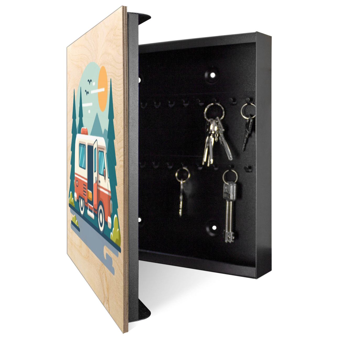 Schlüsselkasten mit Holzfront - Design Schlüsselbox Motiv Abenteuer Reise