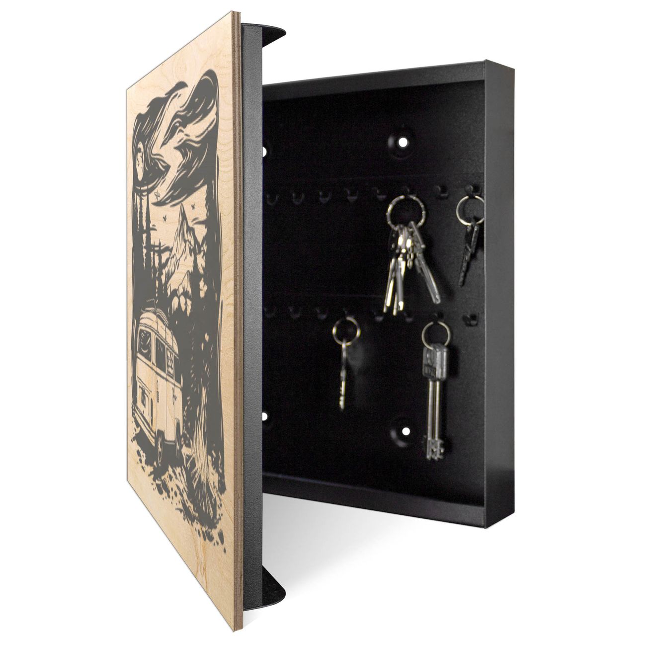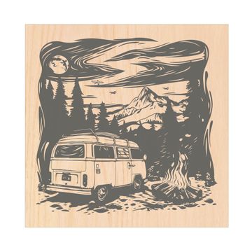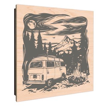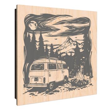 Schlüsselkasten mit Holzfront - Design Schlüsselbox Motiv Abenteuerliche Campingszene