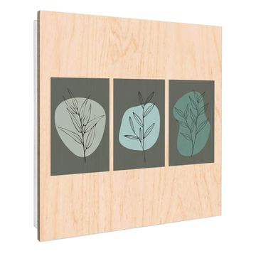 Schlüsselkasten mit Holzfront - Design Schlüsselbox Motiv Abstrakte Botanik