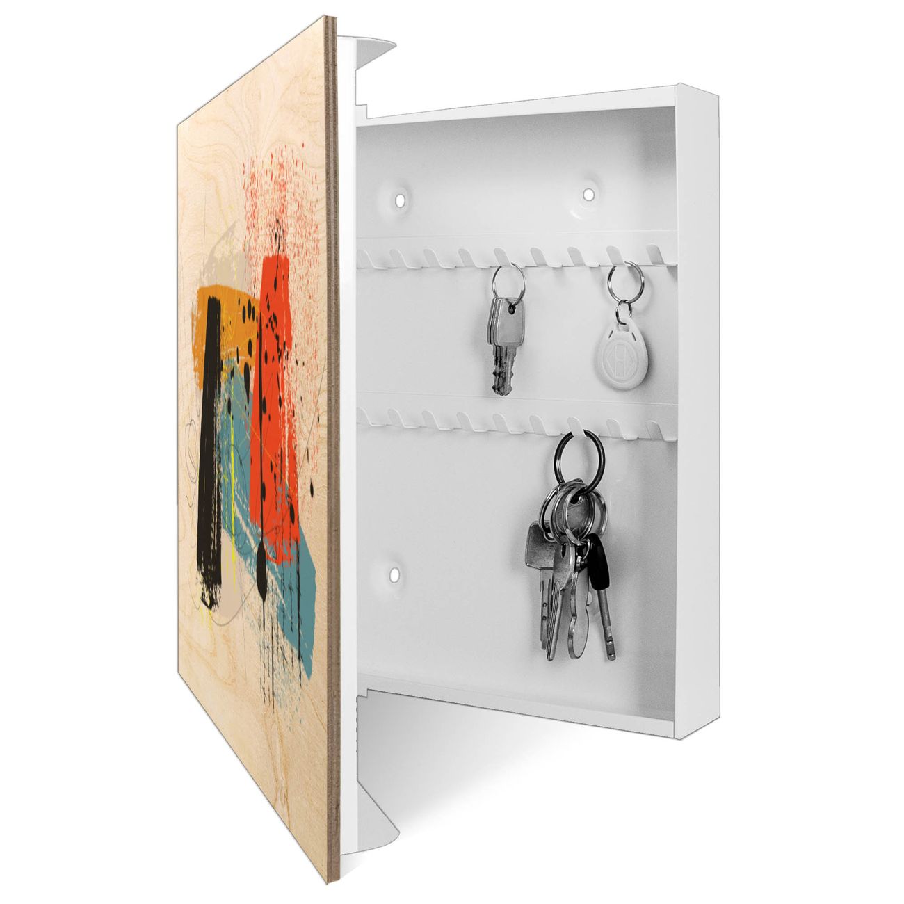 Schlüsselkasten mit Holzfront - Design Schlüsselbox Motiv Abstrakte Farbexplosion