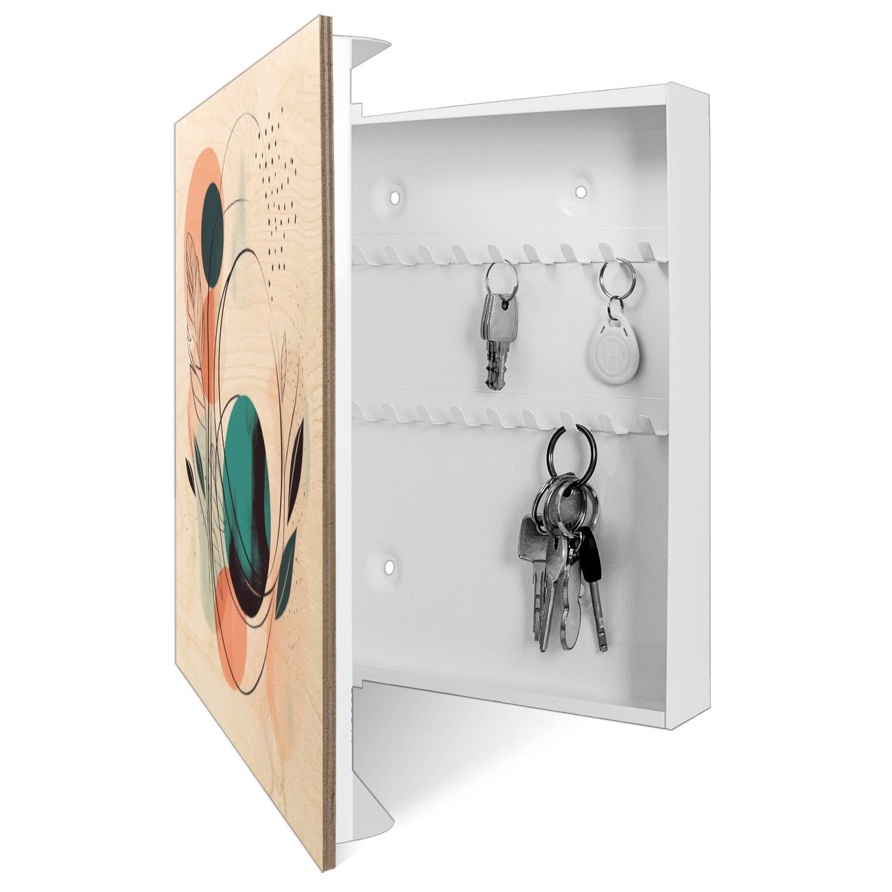 Schlüsselkasten mit Holzfront - Design Schlüsselbox Motiv Abstrakte Formen