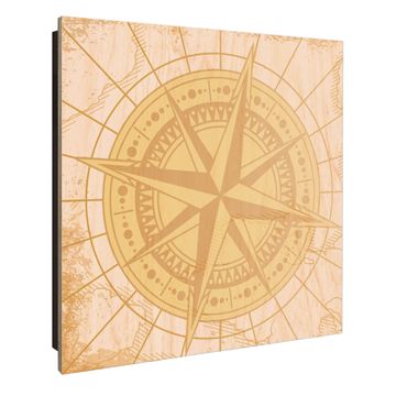 Schlüsselkasten mit Holzfront - Design Schlüsselbox Motiv Antike Kompassrose