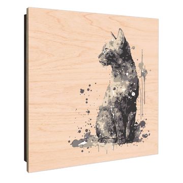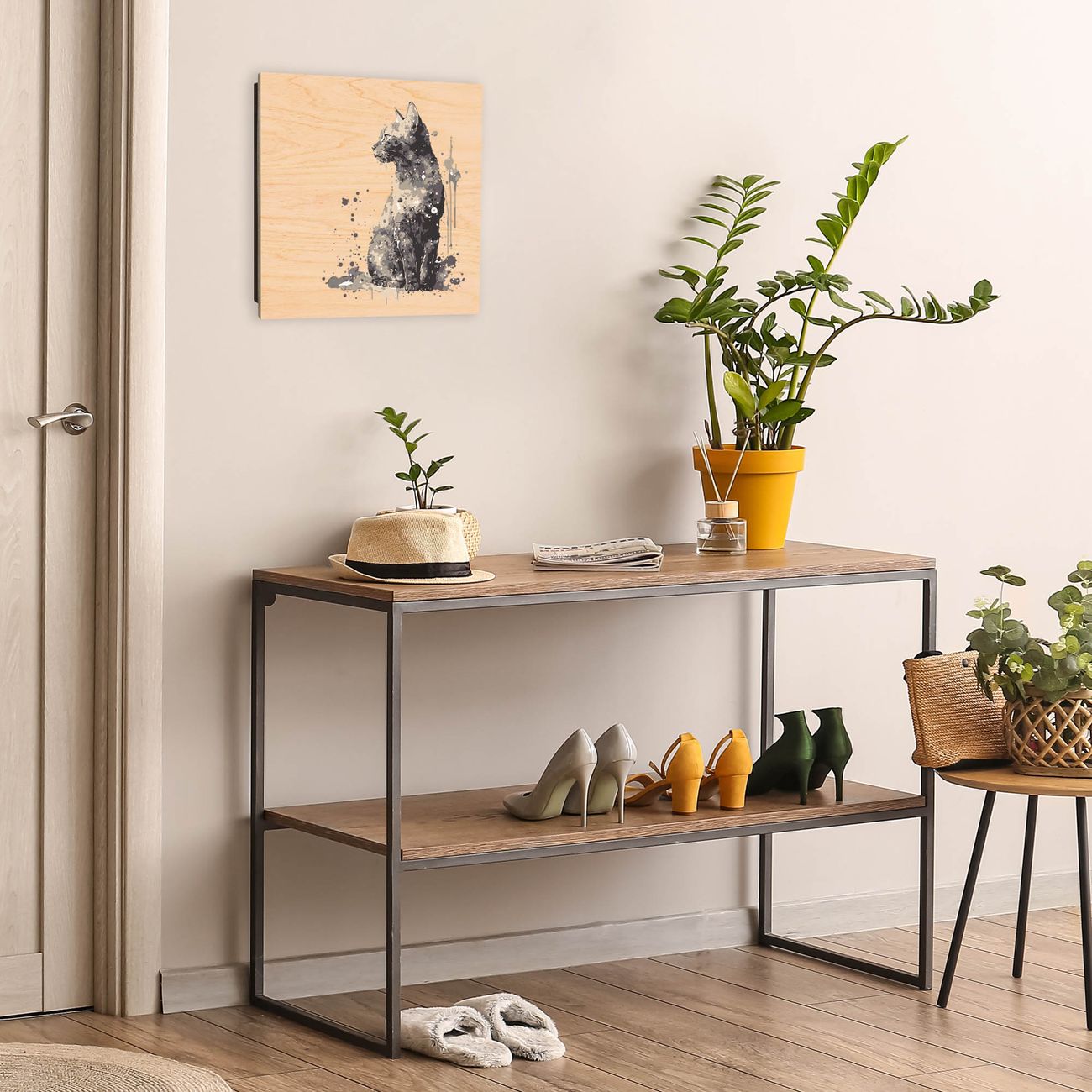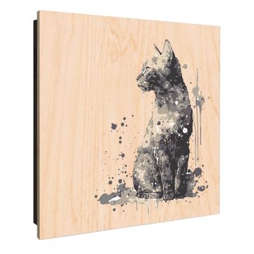 Schlüsselkasten mit Holzfront - Design Schlüsselbox Motiv Aquarellkatze 2