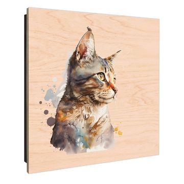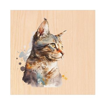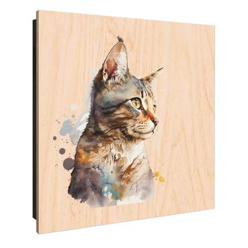Schlüsselkasten mit Holzfront - Design Schlüsselbox Motiv Aquarellkatze