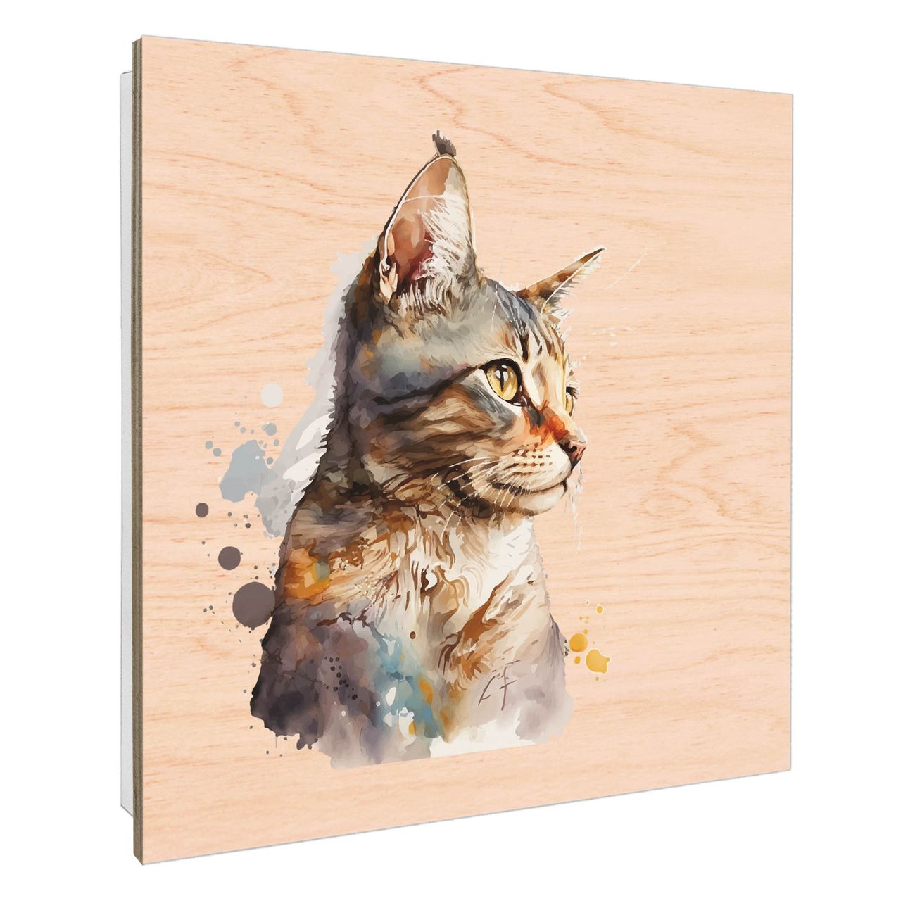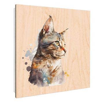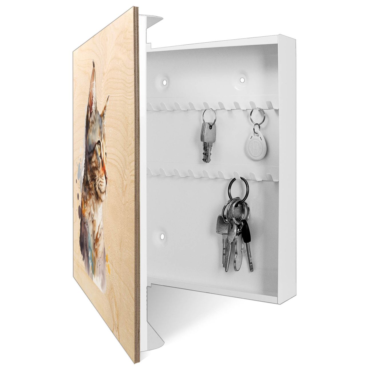 Schlüsselkasten mit Holzfront - Design Schlüsselbox Motiv Aquarellkatze