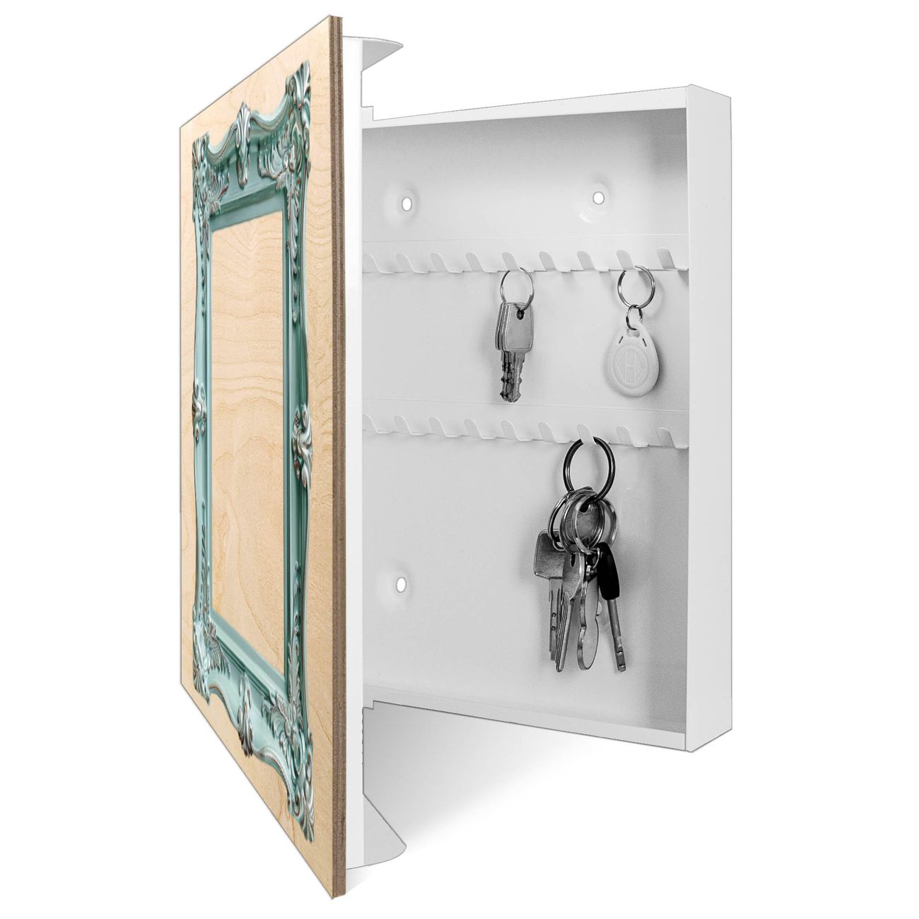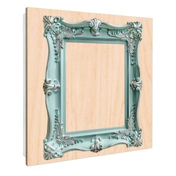 Schlüsselkasten mit Holzfront - Design Schlüsselbox Motiv Barockrahmen in Türkis