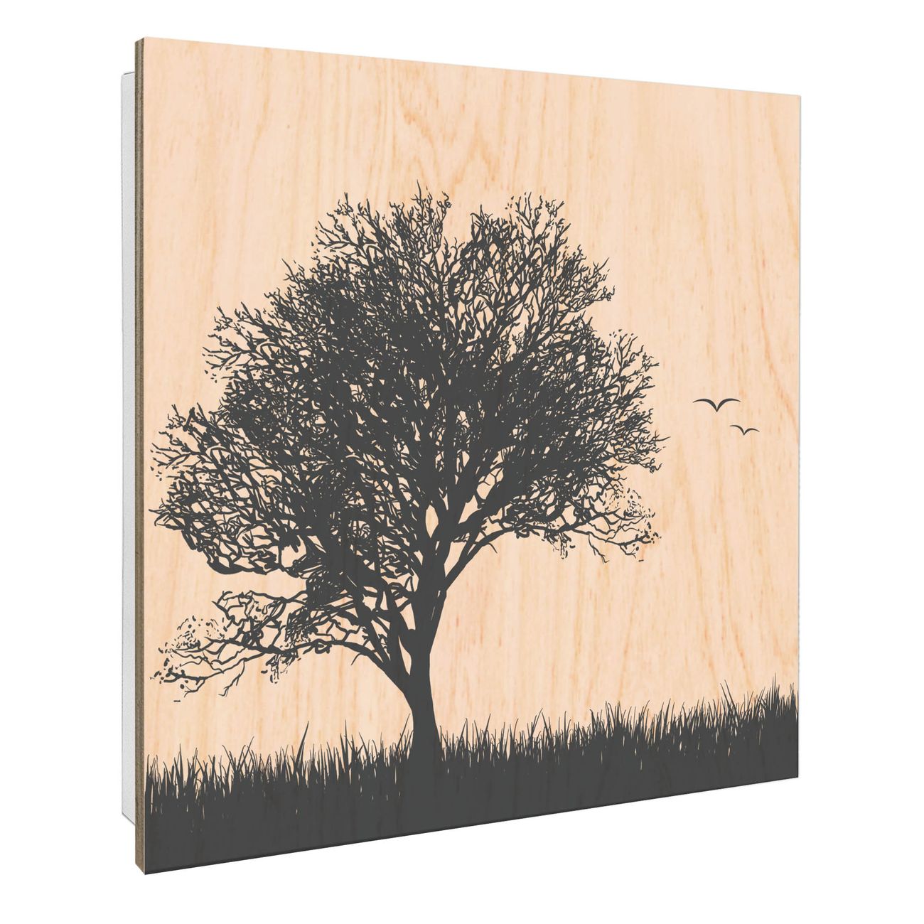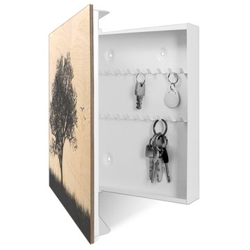 Schlüsselkasten mit Holzfront - Design Schlüsselbox Motiv Baum und Vögel Silhouette