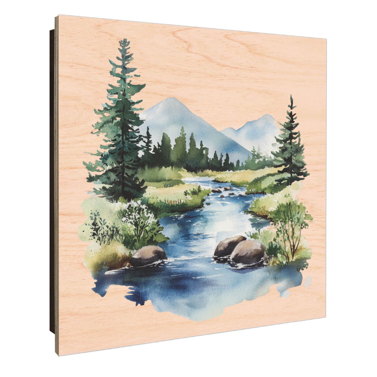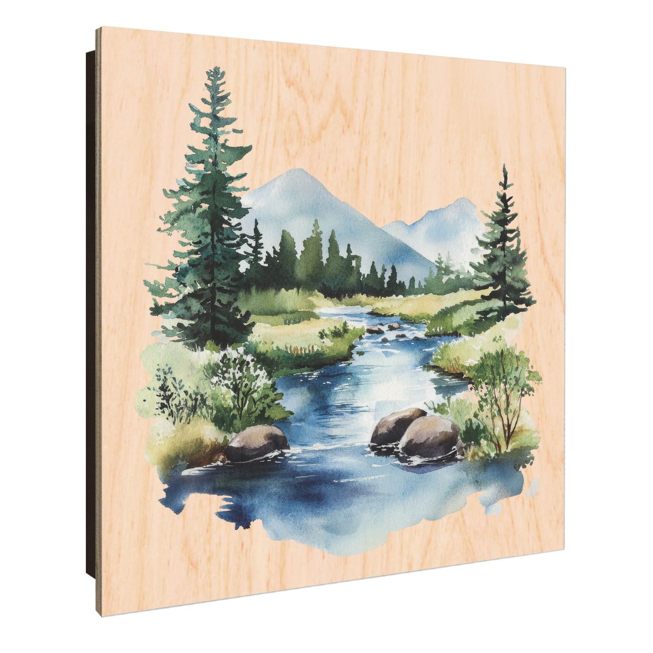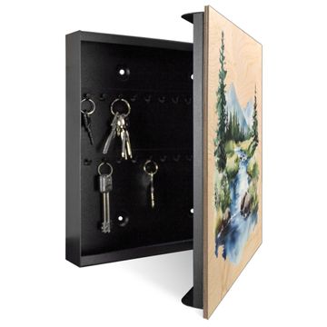 Schlüsselkasten mit Holzfront - Design Schlüsselbox Motiv Bergfluss in der Natur