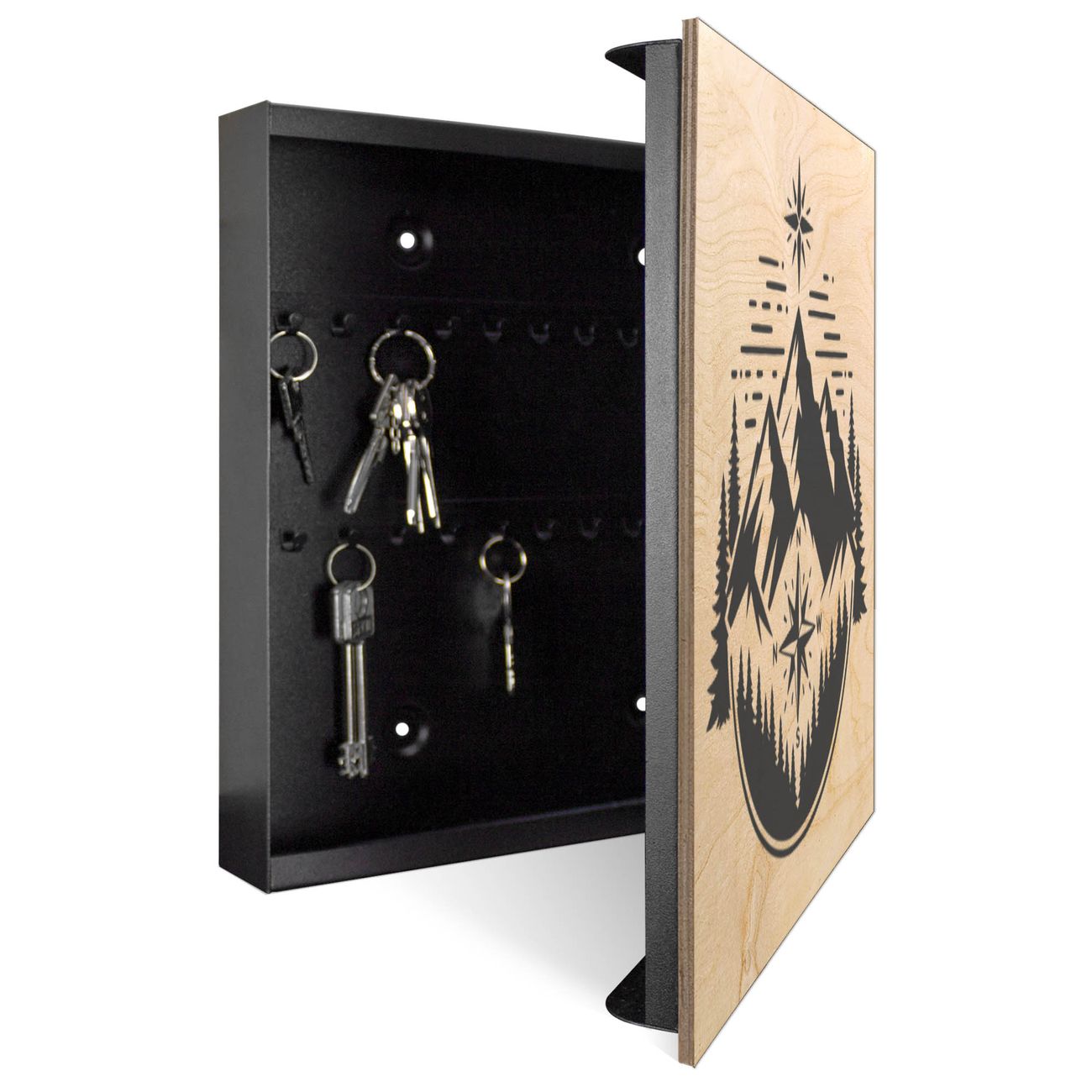 Schlüsselkasten mit Holzfront - Design Schlüsselbox Motiv Bergkompass