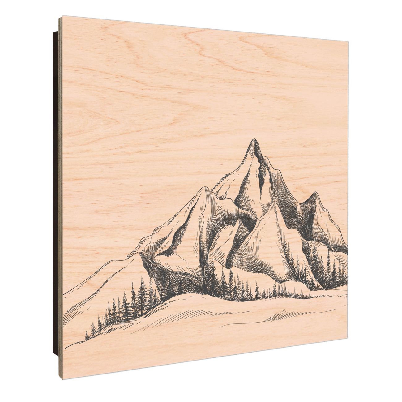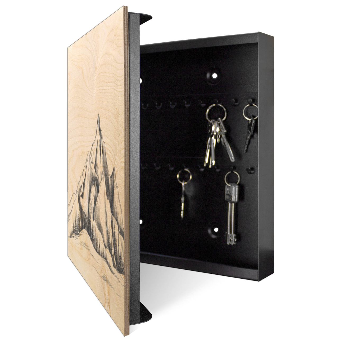 Schlüsselkasten mit Holzfront - Design Schlüsselbox Motiv Bergsilhouette