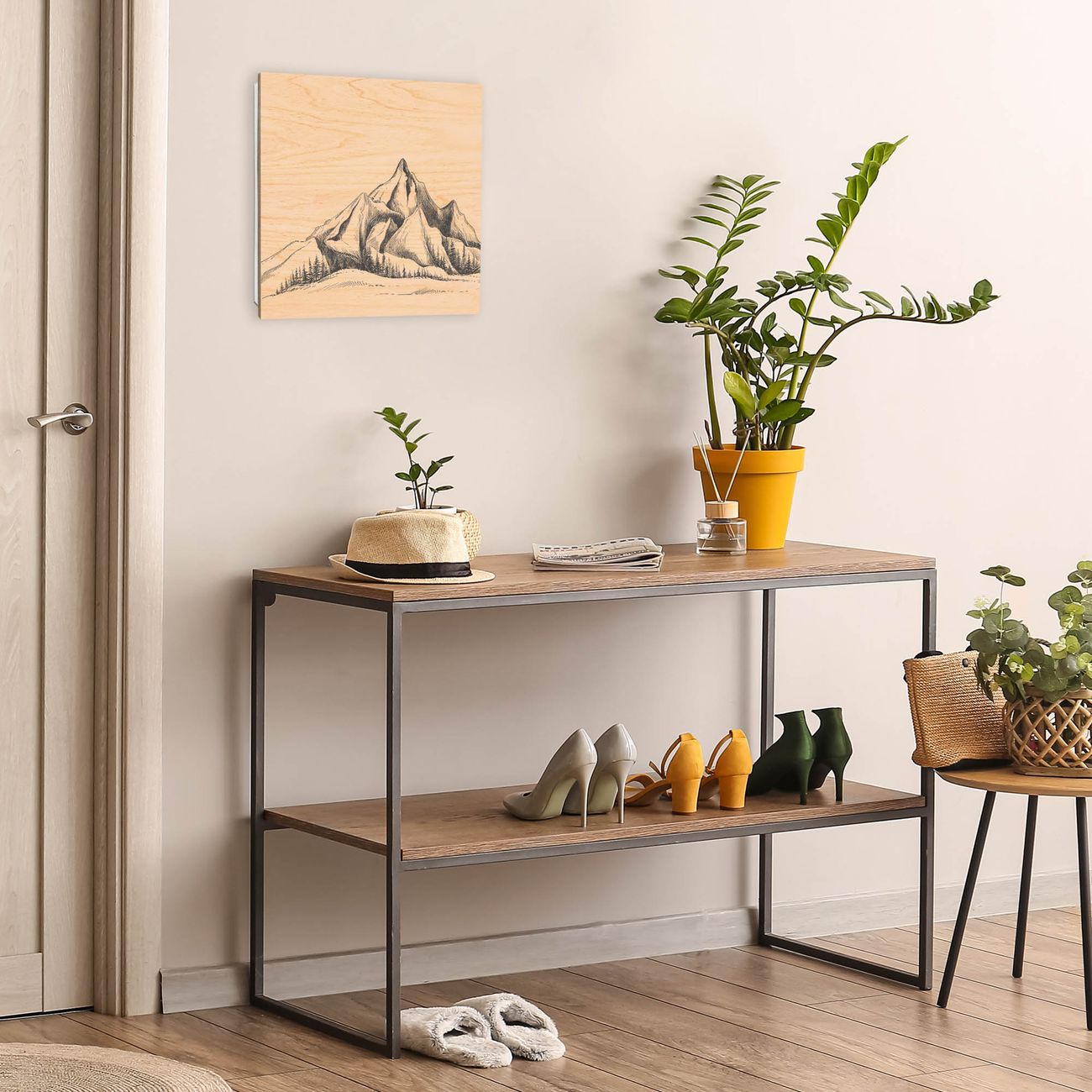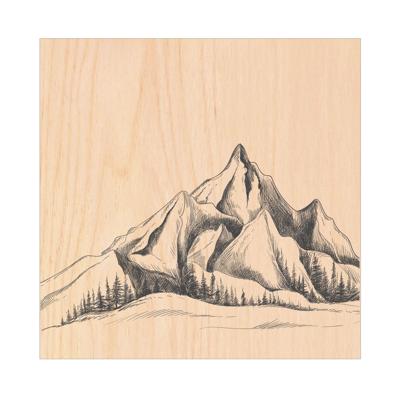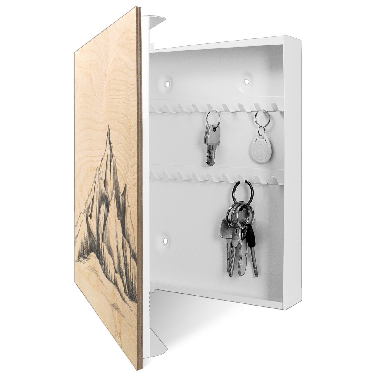 Schlüsselkasten mit Holzfront - Design Schlüsselbox Motiv Bergsilhouette