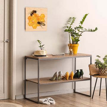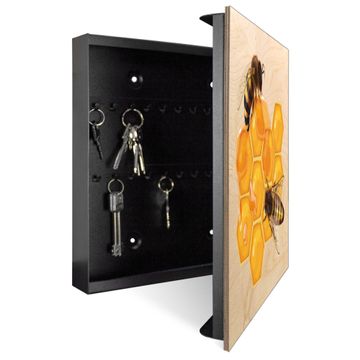 Schlüsselkasten mit Holzfront - Design Schlüsselbox Motiv Bienen auf Honigwaben