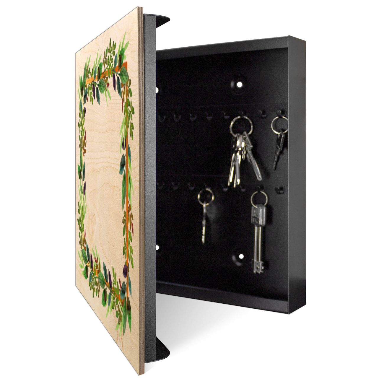 Schlüsselkasten mit Holzfront - Design Schlüsselbox Motiv Blätterrahmen 2